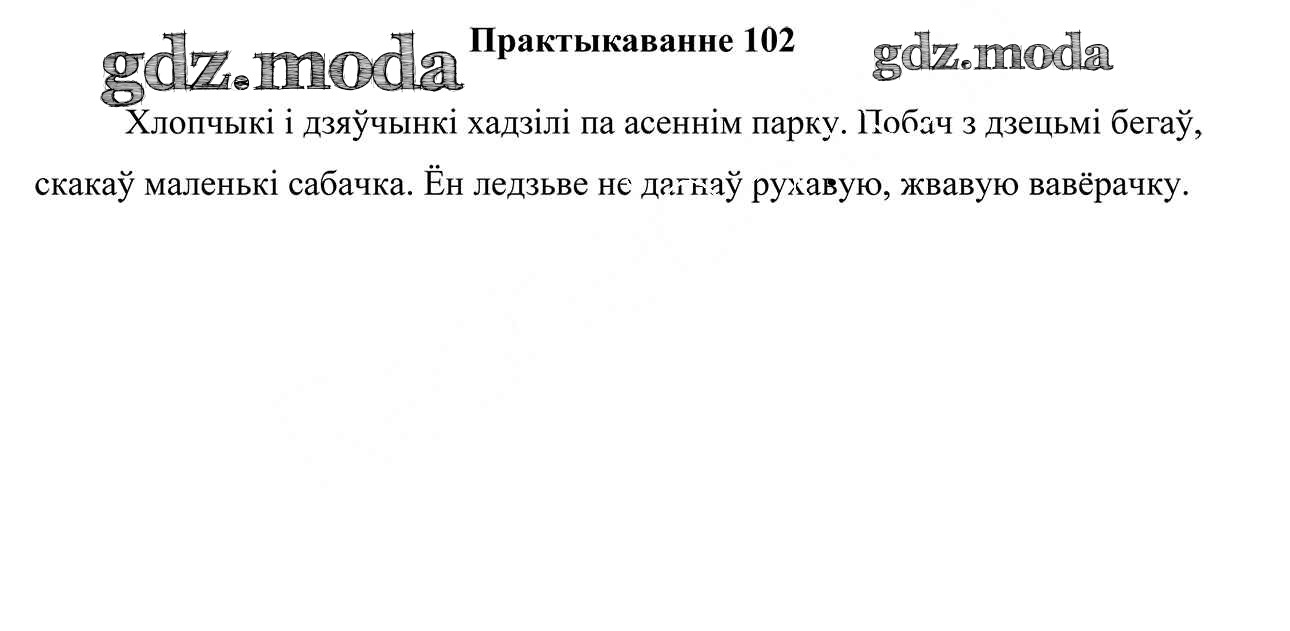 ГДЗ решение к заданию № 102 Белорусский язык 4 класс Свірыдзенка В. І. Национальный институт образования 2018 Часть 1, Часть 2 ФГОС бесплатно на гдз.мода!