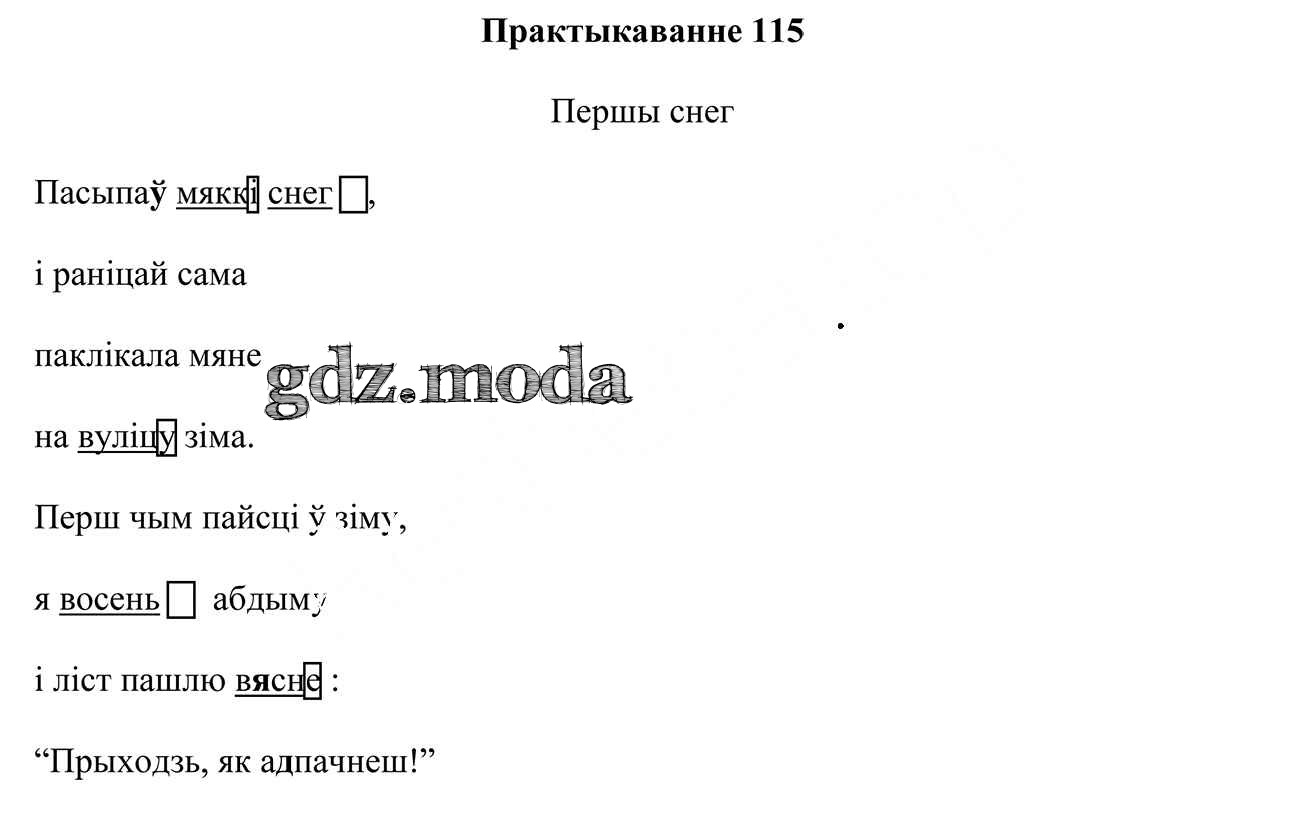 ГДЗ решение к заданию № 115 Белорусский язык 4 класс Свірыдзенка В. І. Национальный институт образования 2018 Часть 1, Часть 2 ФГОС бесплатно на гдз.мода!