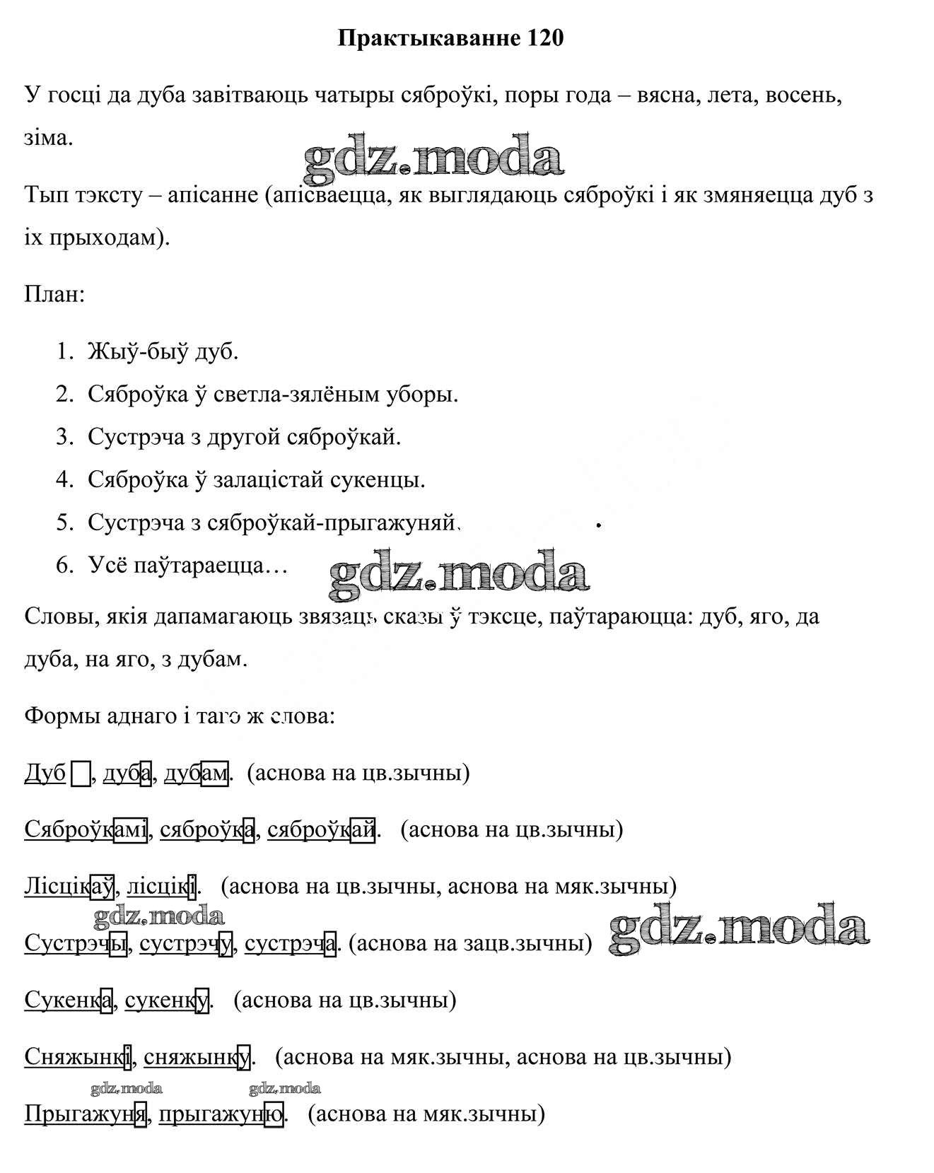 ГДЗ решение к заданию № 120 Белорусский язык 4 класс Свірыдзенка В. І. Национальный институт образования 2018 Часть 1, Часть 2 ФГОС бесплатно на гдз.мода!