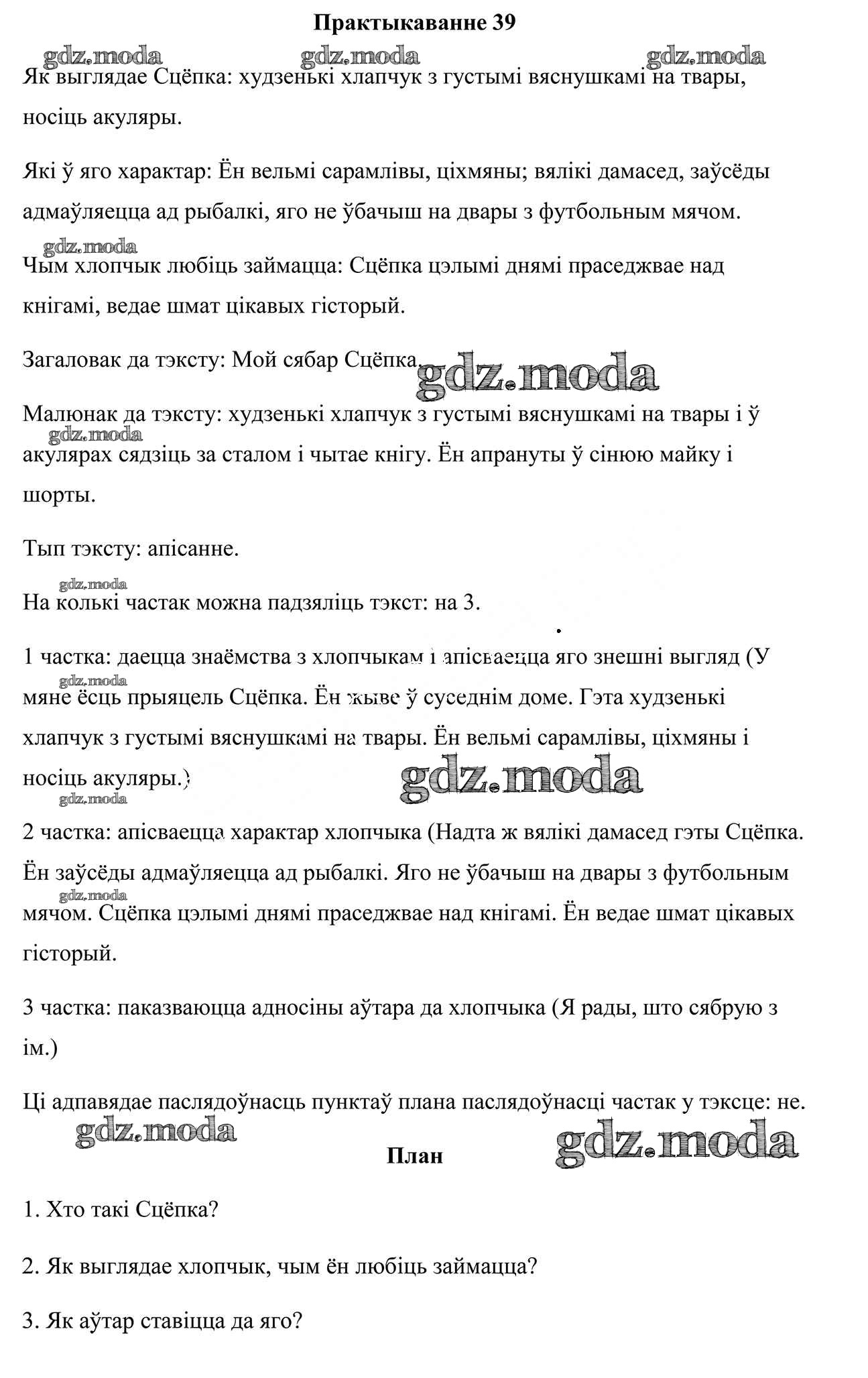 ГДЗ решение к заданию № 39 Белорусский язык 4 класс Свірыдзенка В. І. Национальный институт образования 2018 Часть 1, Часть 2 ФГОС бесплатно на гдз.мода!