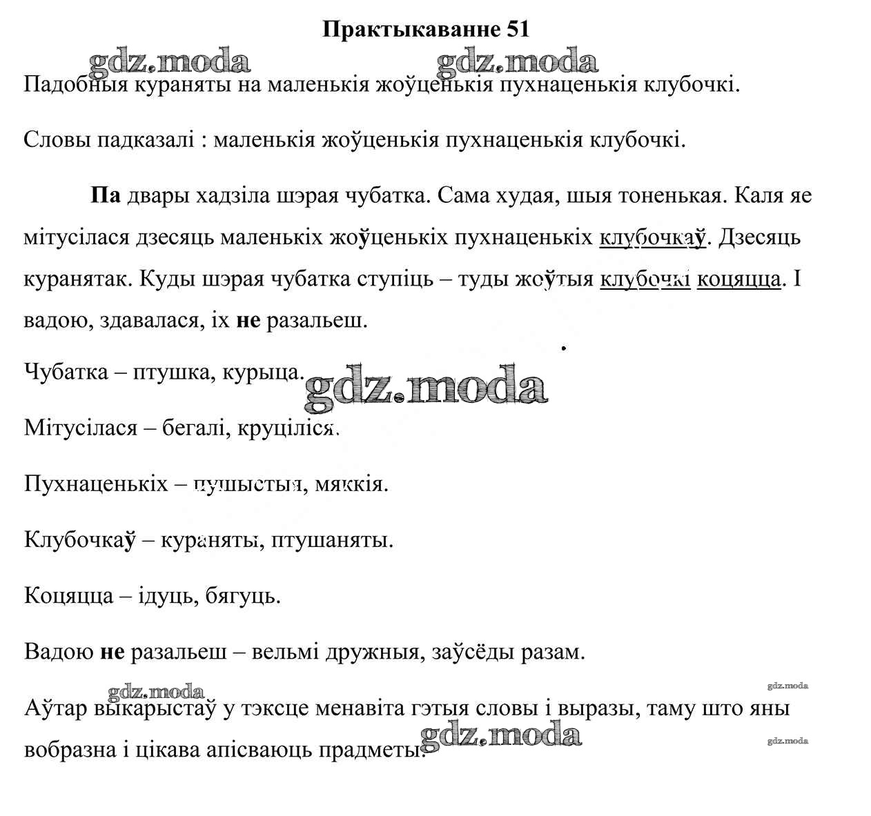 ГДЗ решение к заданию № 51 Белорусский язык 4 класс Свірыдзенка В. І. Национальный институт образования 2018 Часть 1, Часть 2 ФГОС бесплатно на гдз.мода!
