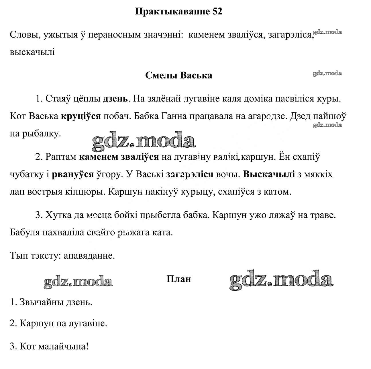 ГДЗ решение к заданию № 52 Белорусский язык 4 класс Свірыдзенка В. І. Национальный институт образования 2018 Часть 1, Часть 2 ФГОС бесплатно на гдз.мода!