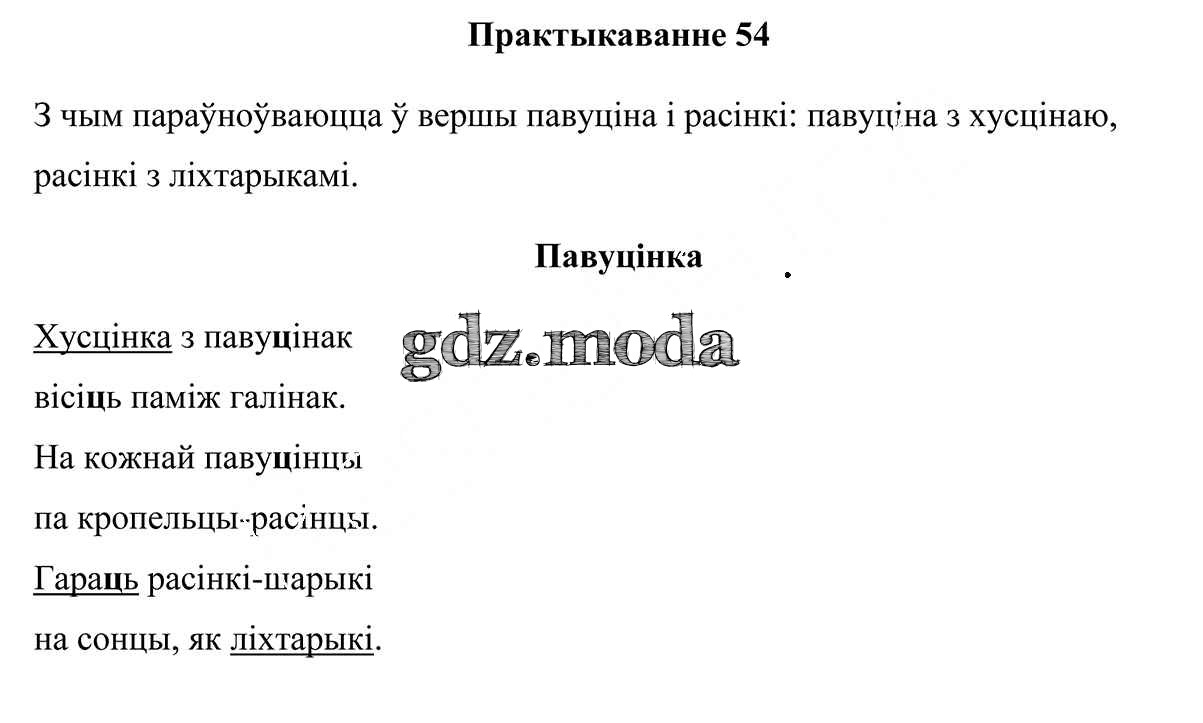 ГДЗ решение к заданию № 54 Белорусский язык 4 класс Свірыдзенка В. І. Национальный институт образования 2018 Часть 1, Часть 2 ФГОС бесплатно на гдз.мода!