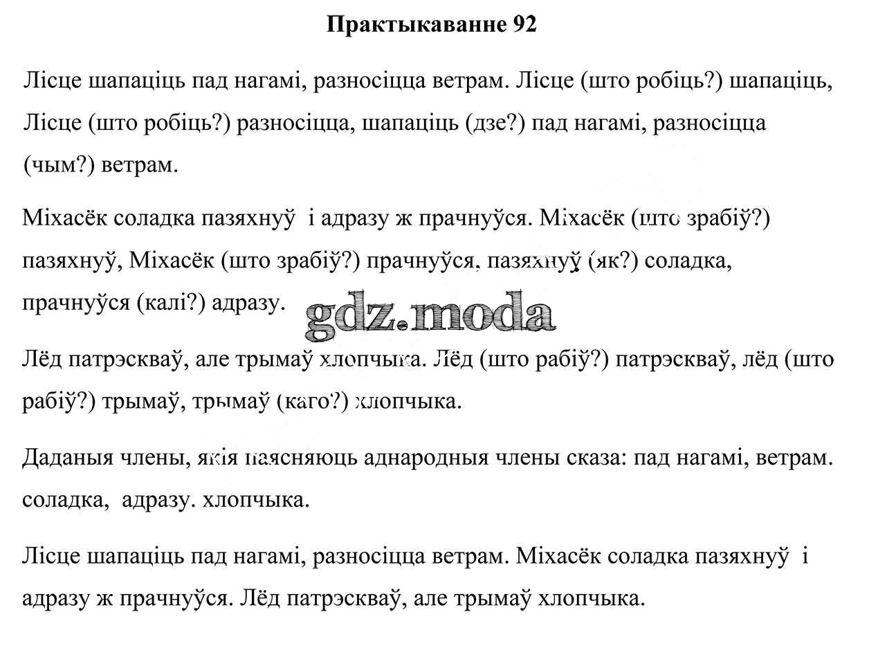 ГДЗ решение к заданию № 92 Белорусский язык 4 класс Свірыдзенка В. І. Национальный институт образования 2018 Часть 1, Часть 2 ФГОС бесплатно на гдз.мода!