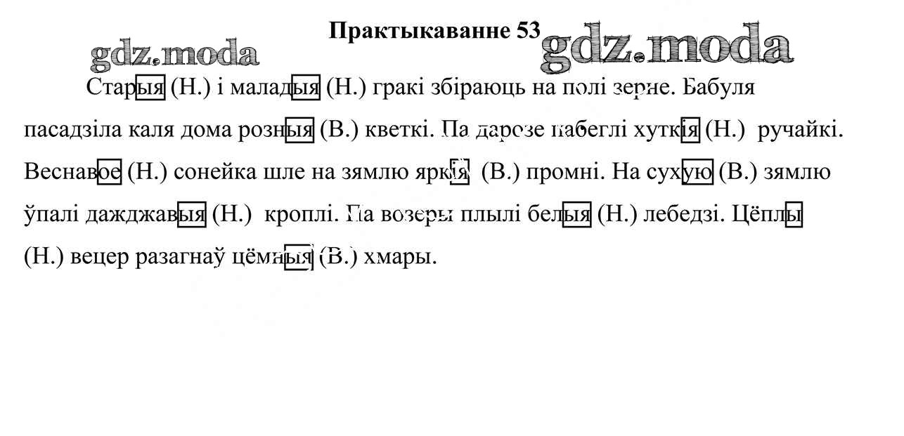 ГДЗ решение к заданию № 53 Белорусский язык 4 класс Свірыдзенка В. І. Национальный институт образования 2018 Часть 1, Часть 2 ФГОС бесплатно на гдз.мода!