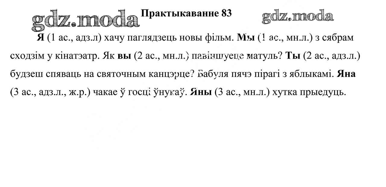 ГДЗ решение к заданию № 83 Белорусский язык 4 класс Свірыдзенка В. І. Национальный институт образования 2018 Часть 1, Часть 2 ФГОС бесплатно на гдз.мода!
