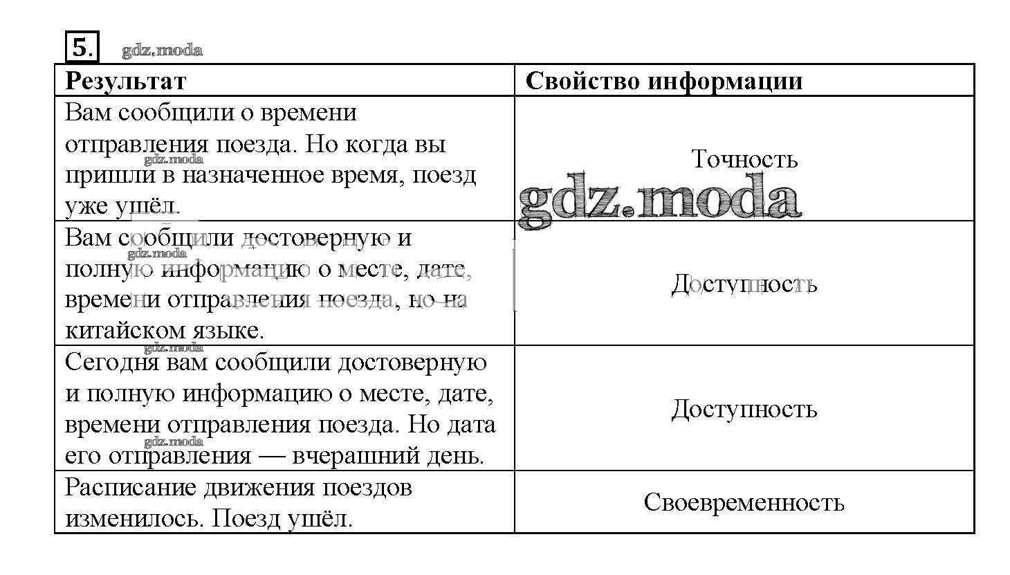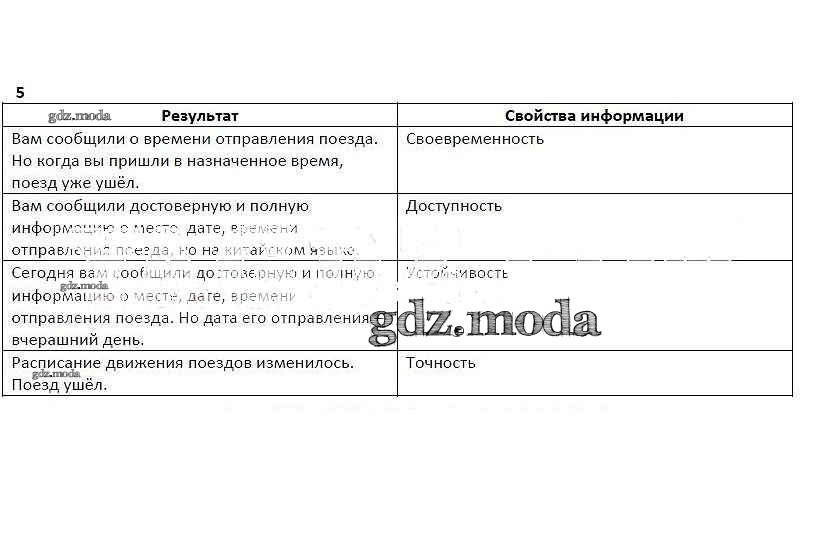 ОТВЕТ на задание № 5 Рабочая тетрадь по Информатике 4 класс Матвеева