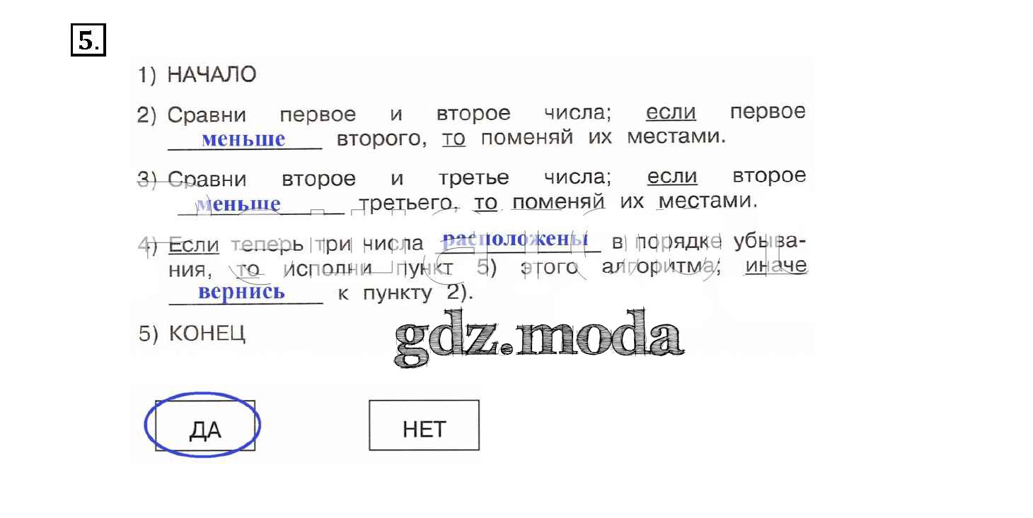 ГДЗ решение к заданию № 5 Информатика 4 класс рабочая тетрадь Матвеева Бином 2017 Часть 1, Часть 2 ФГОС бесплатно на гдз.мода!
