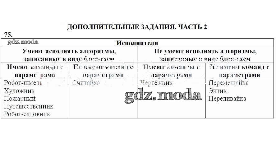 ГДЗ решение к заданию № 75 Информатика 4 класс тетрадь для самостоятельной работы Бененсон Е.П. Академкнига 2018 Часть 1, Часть 2 ФГОС бесплатно на гдз.мода!