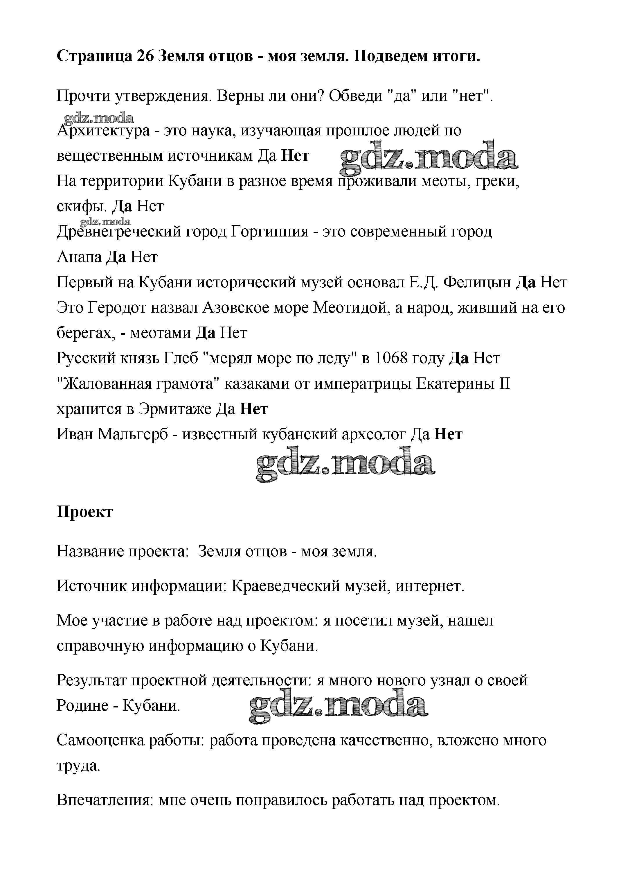 ГДЗ решение к заданию № 26 Кубановедение 4 класс рабочая тетрадь Науменко Перспективы образования 2020 ФГОС бесплатно на гдз.мода!