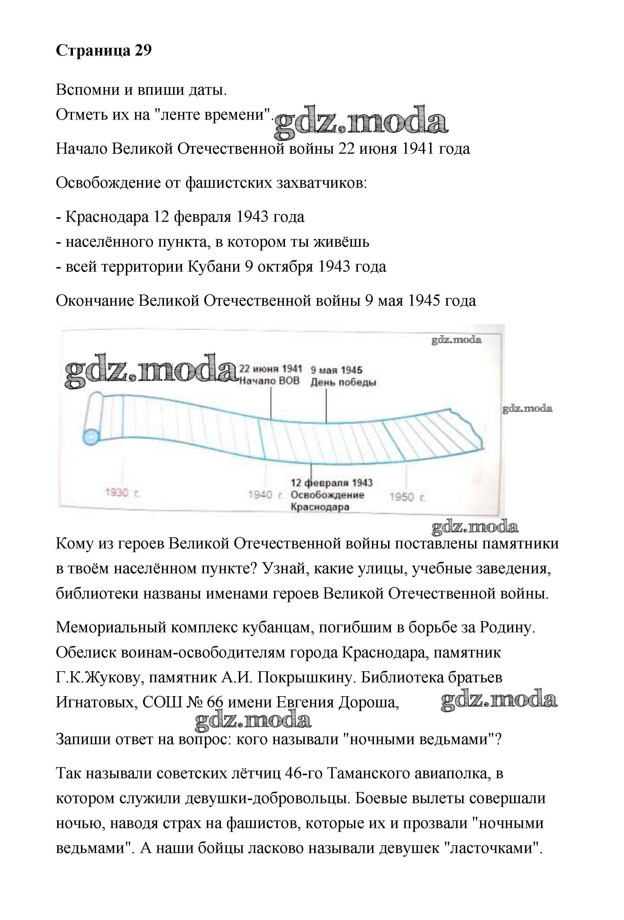 ГДЗ решение к заданию № 29 Кубановедение 4 класс рабочая тетрадь Науменко Перспективы образования 2020 ФГОС бесплатно на гдз.мода!