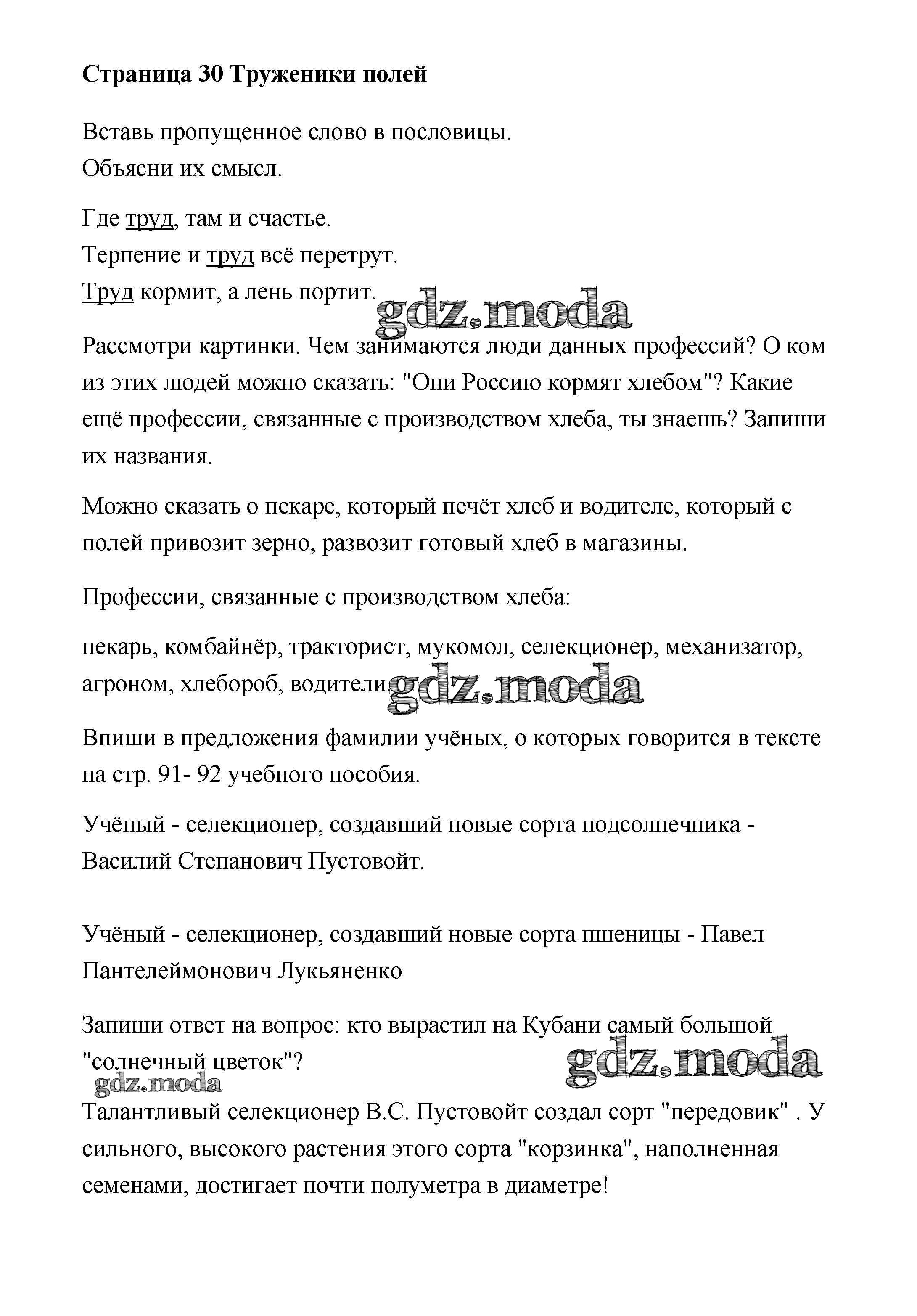 ГДЗ решение к заданию № 30 Кубановедение 4 класс рабочая тетрадь Науменко Перспективы образования 2020 ФГОС бесплатно на гдз.мода!