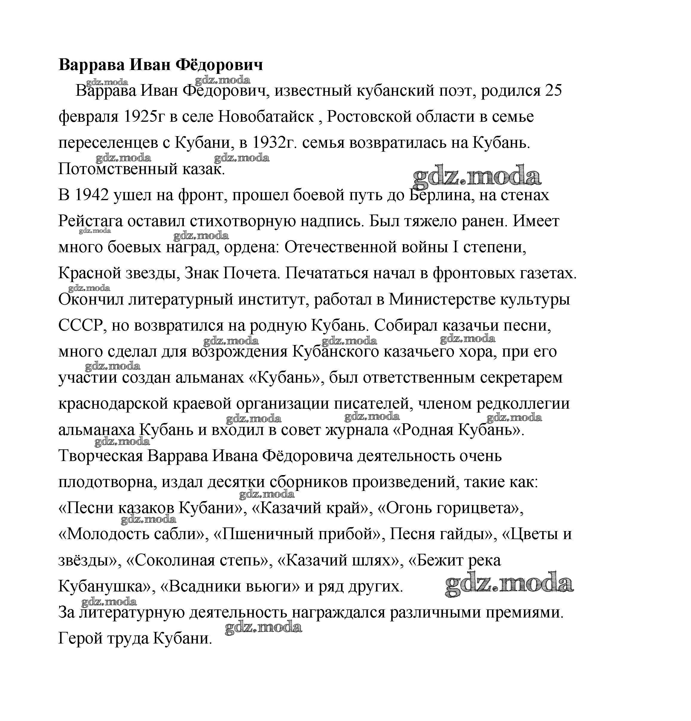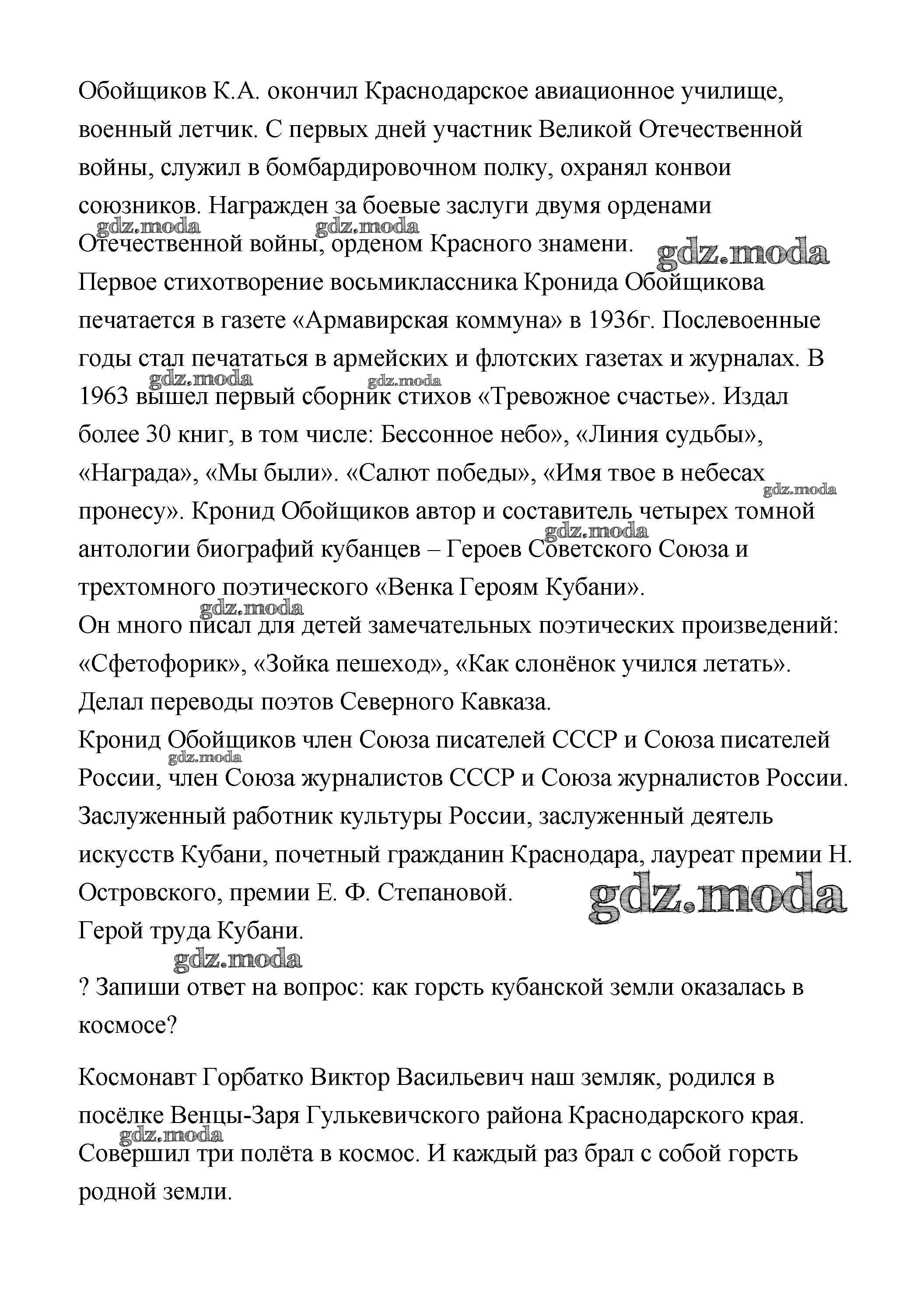 ОТВЕТ на задание № 31 Рабочая тетрадь по Кубановедению 4 класс Науменко