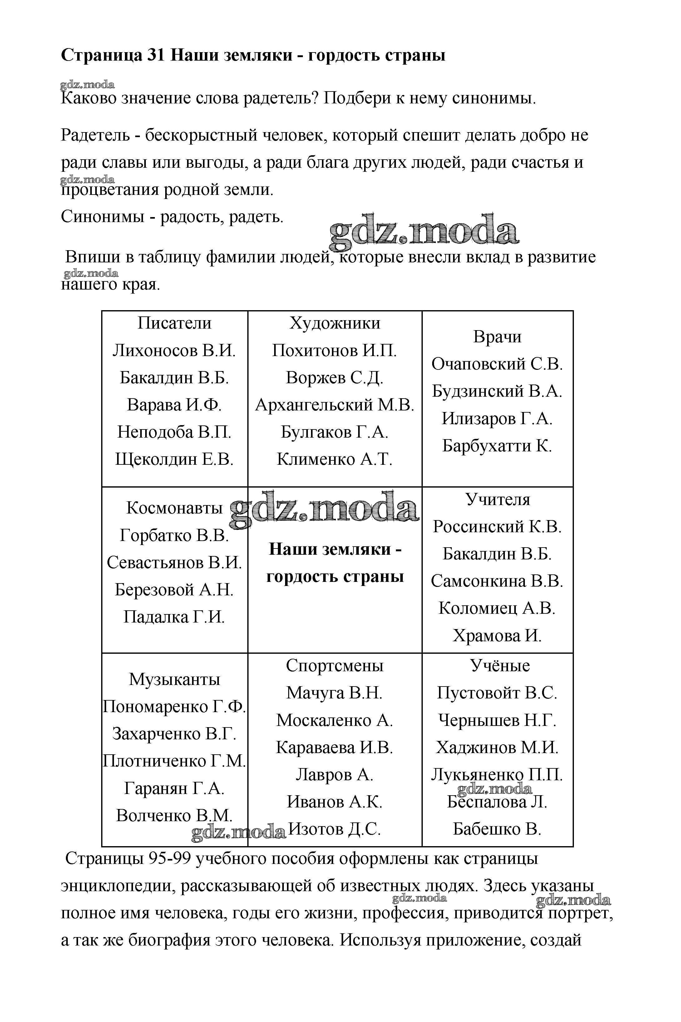 ГДЗ решение к заданию № 31 Кубановедение 4 класс рабочая тетрадь Науменко Перспективы образования 2020 ФГОС бесплатно на гдз.мода!