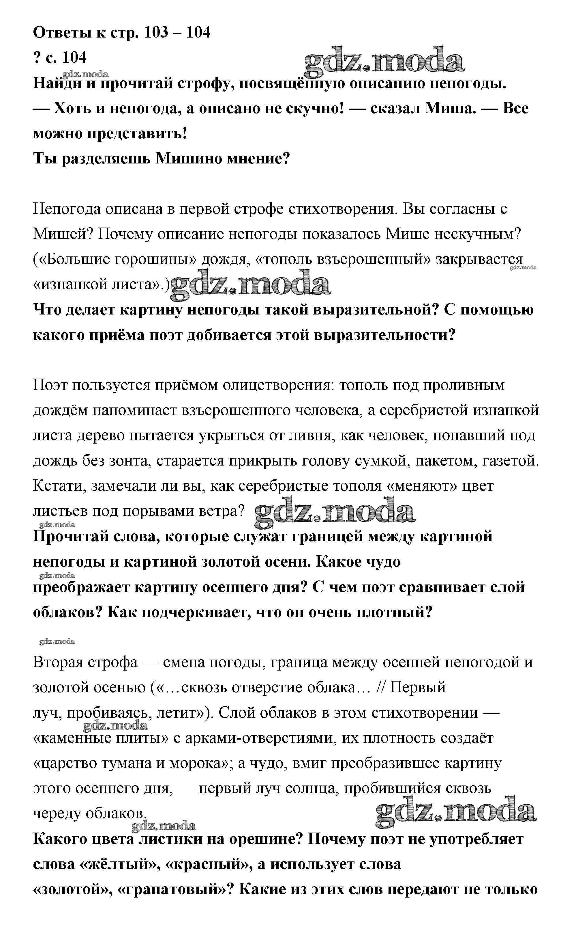ГДЗ решение к заданию № 104 Литературное чтение 4 класс Чуракова Академкнига 2017 Часть 1, Часть 2 ФГОС бесплатно на гдз.мода!