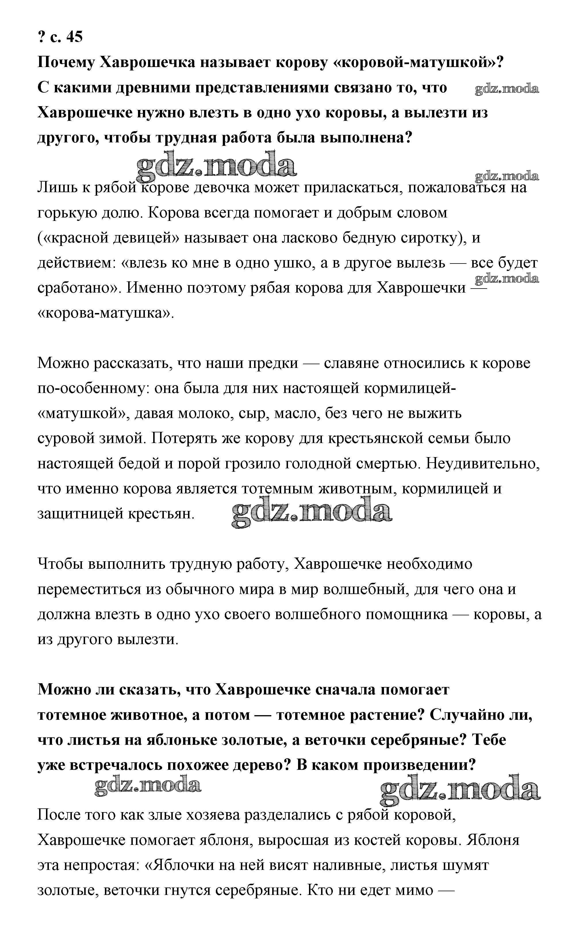 ОТВЕТ на задание № 45 Учебник по Литературе 4 класс Чуракова Перспективная начальная школа