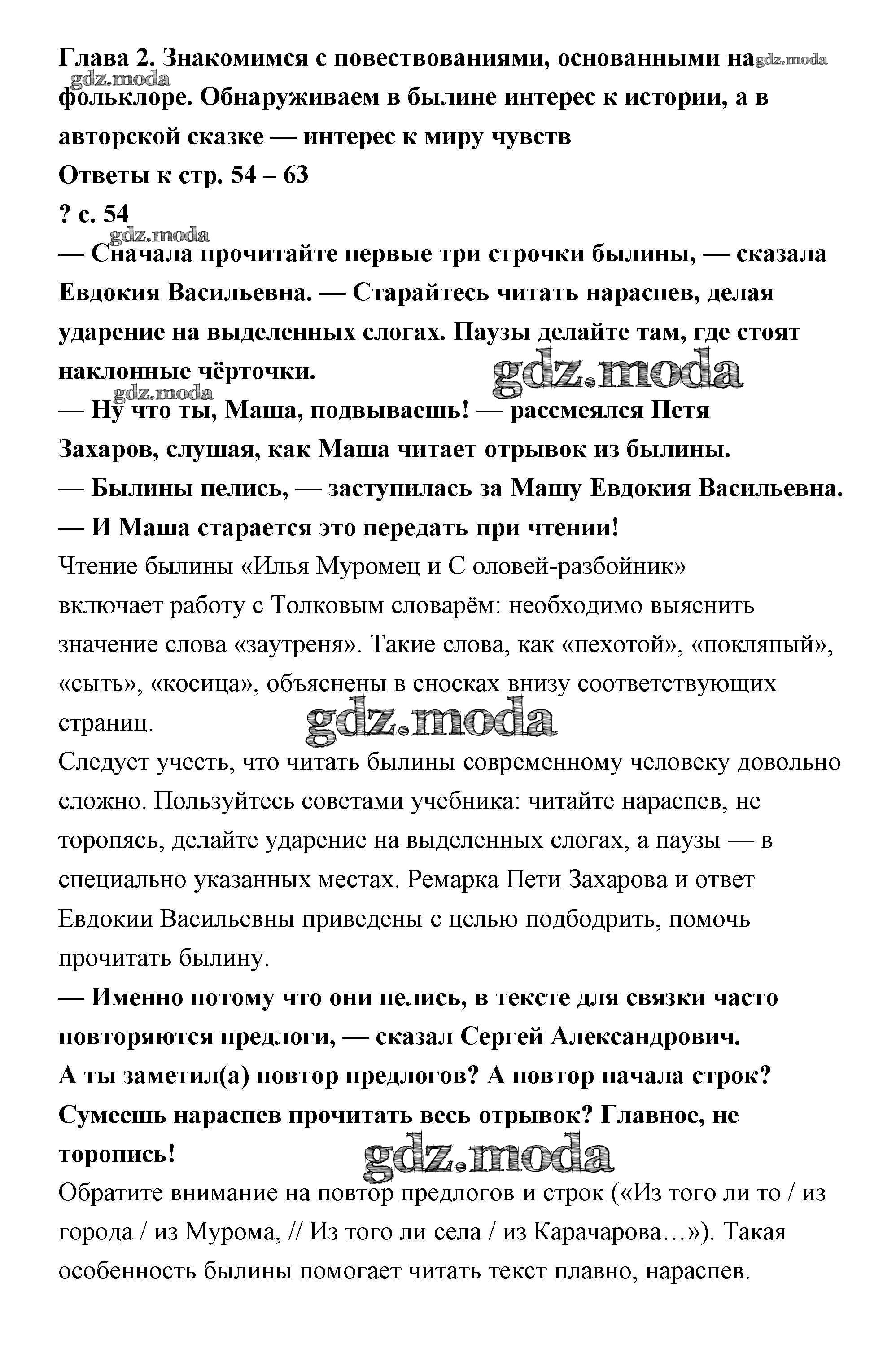 ОТВЕТ на задание № 54 Учебник по Литературе 4 класс Чуракова Перспективная начальная школа