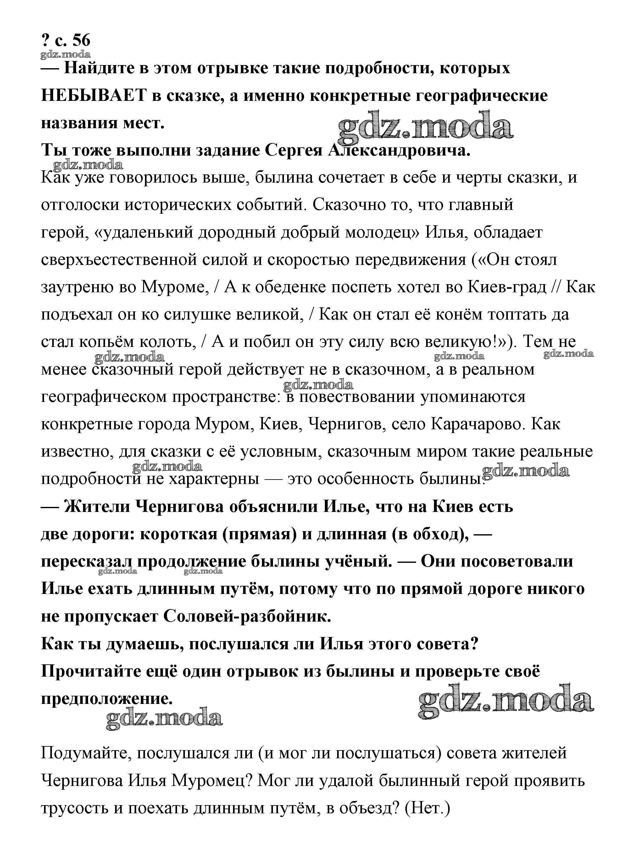 ГДЗ решение к заданию № 56 Литературное чтение 4 класс Чуракова Академкнига 2017 Часть 1, Часть 2 ФГОС бесплатно на гдз.мода!