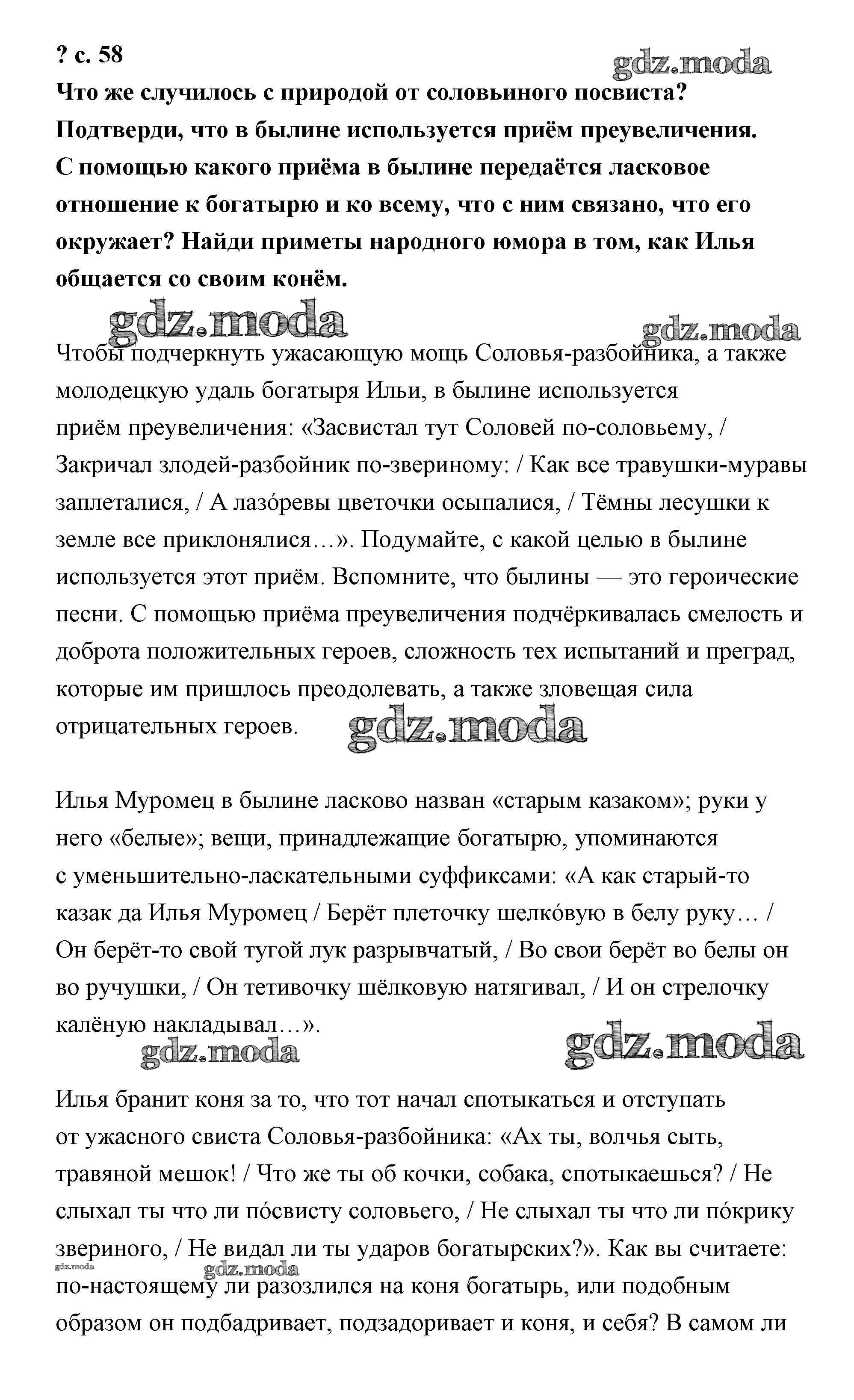 ОТВЕТ на задание № 58 Учебник по Литературе 4 класс Чуракова Перспективная начальная школа