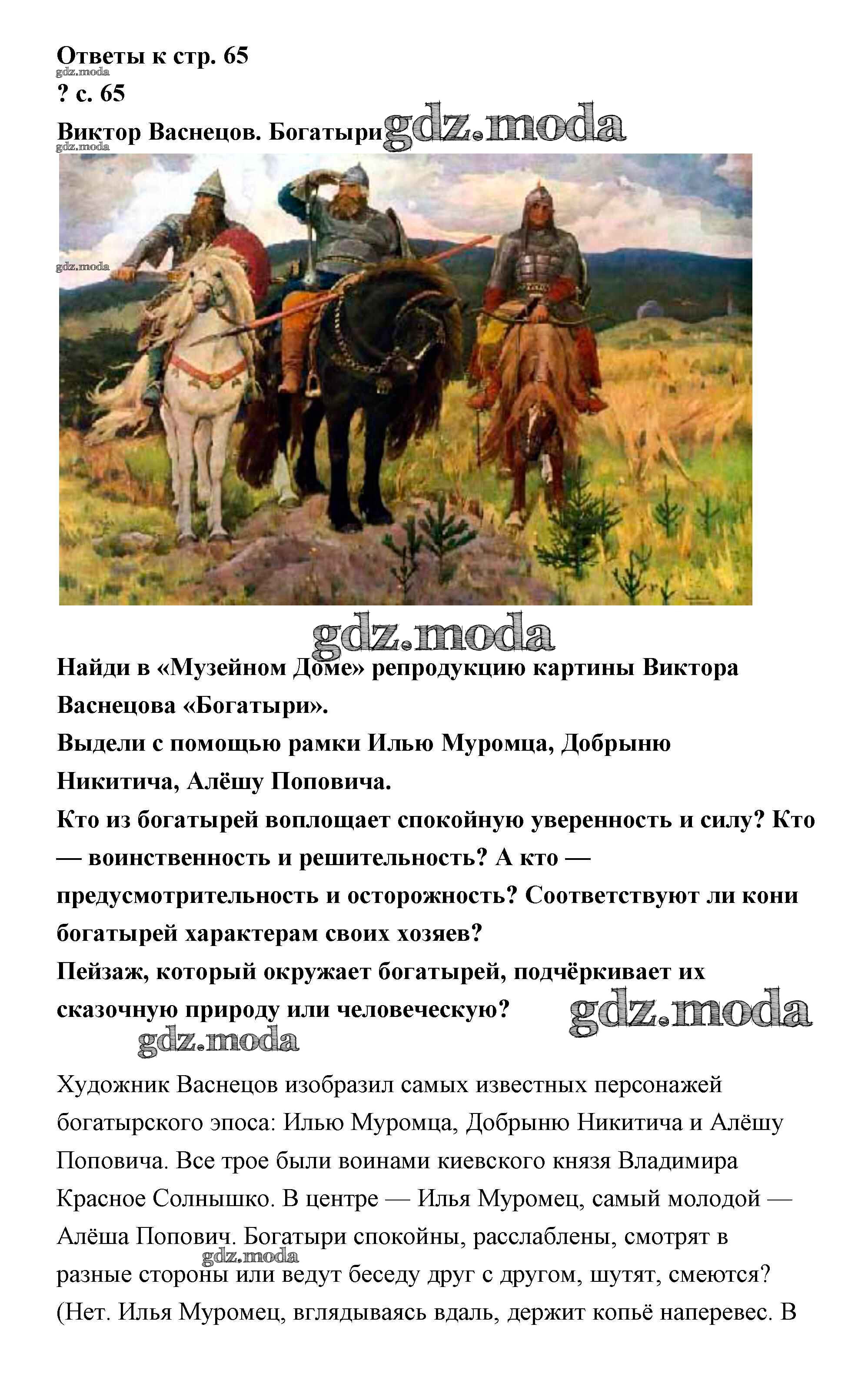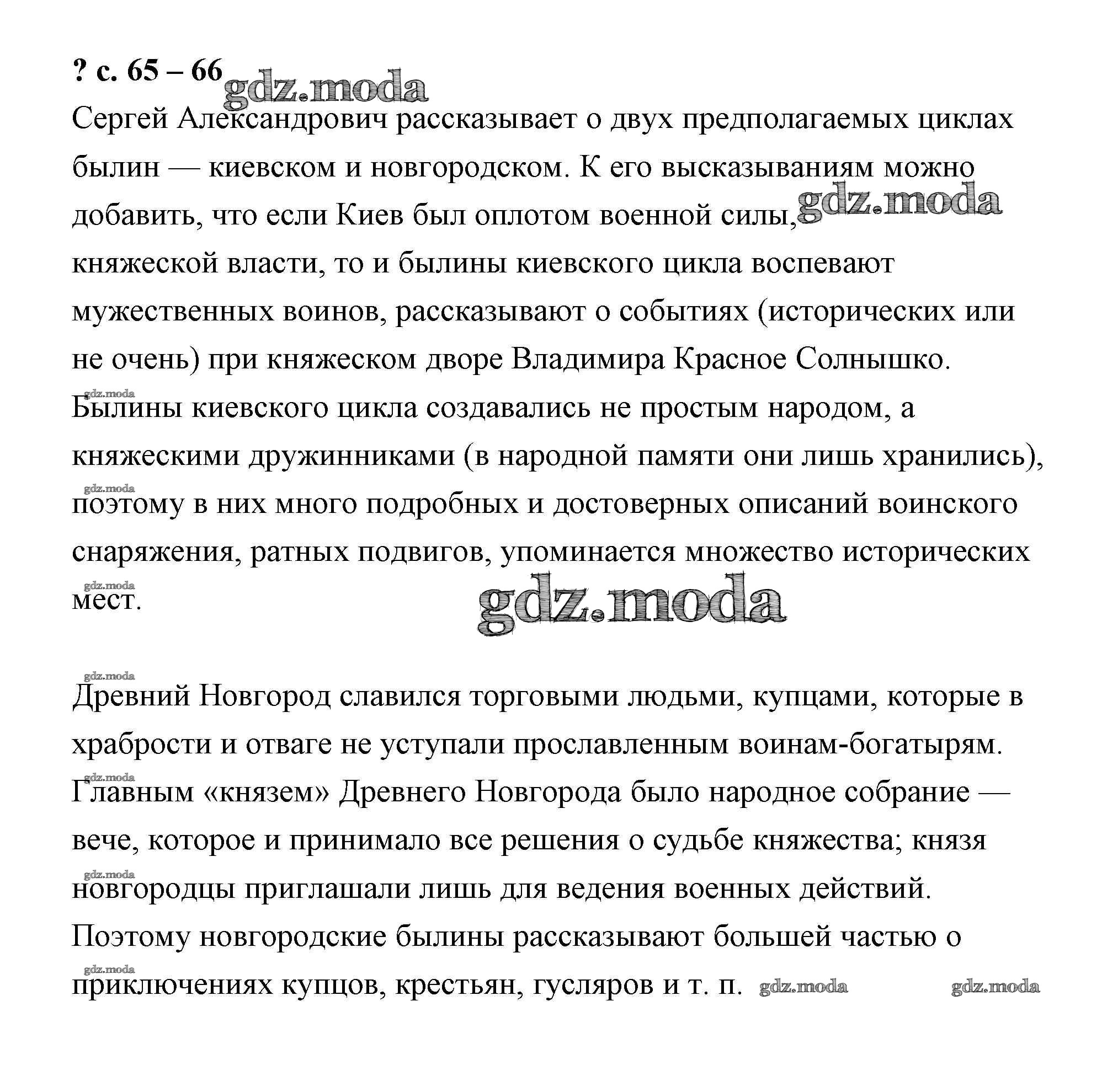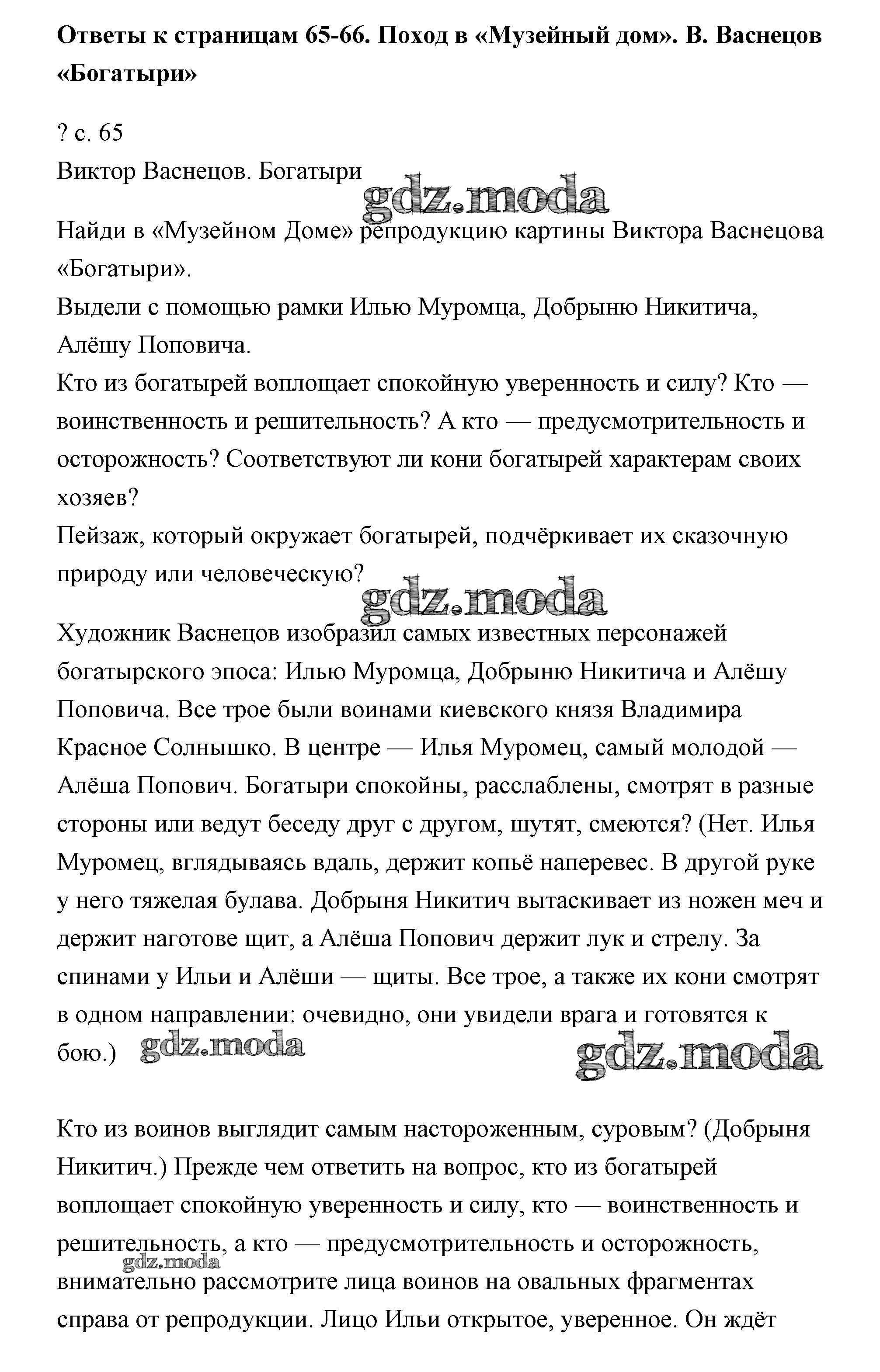ОТВЕТ на задание № 65 Учебник по Литературе 4 класс Чуракова Перспективная начальная школа