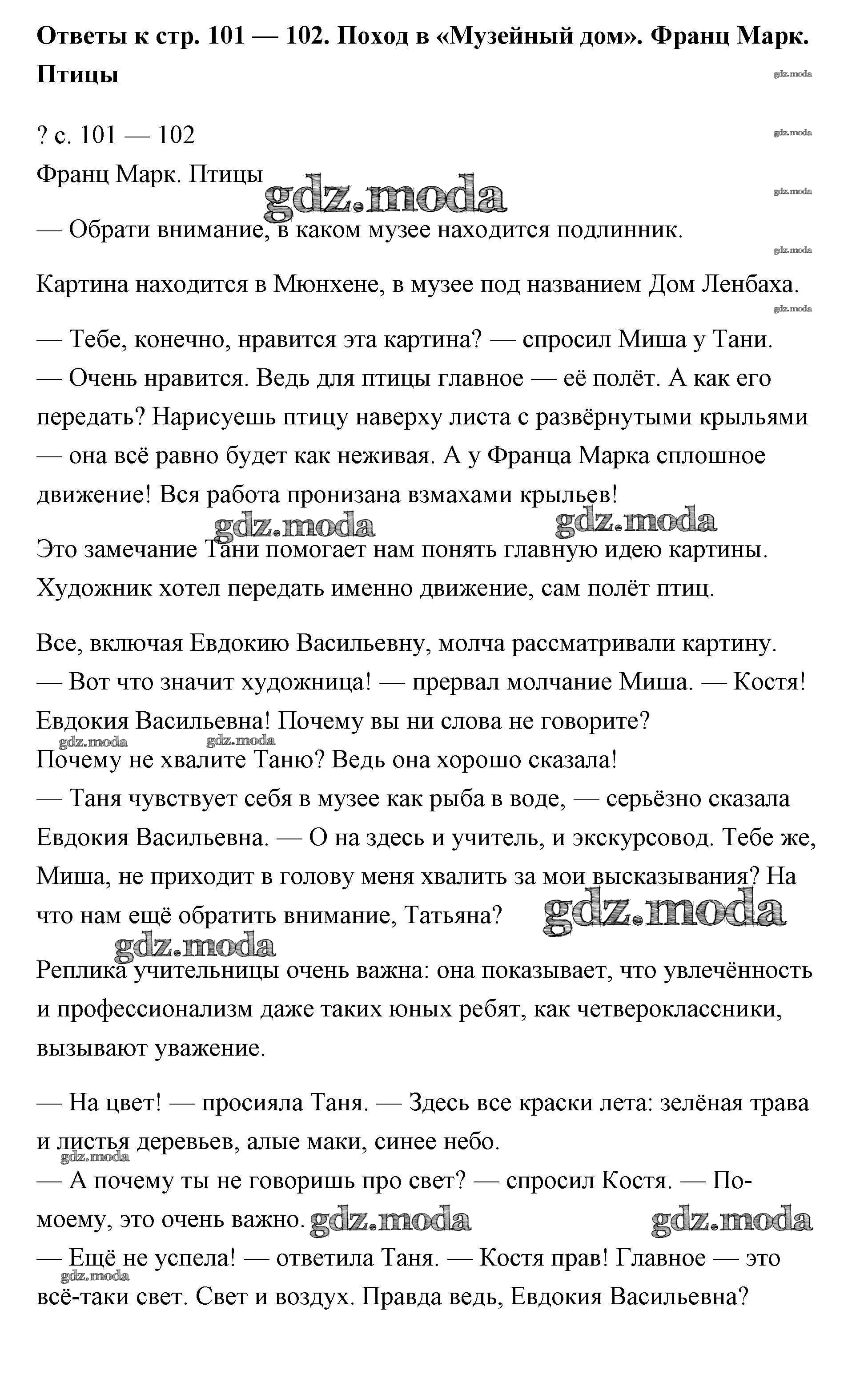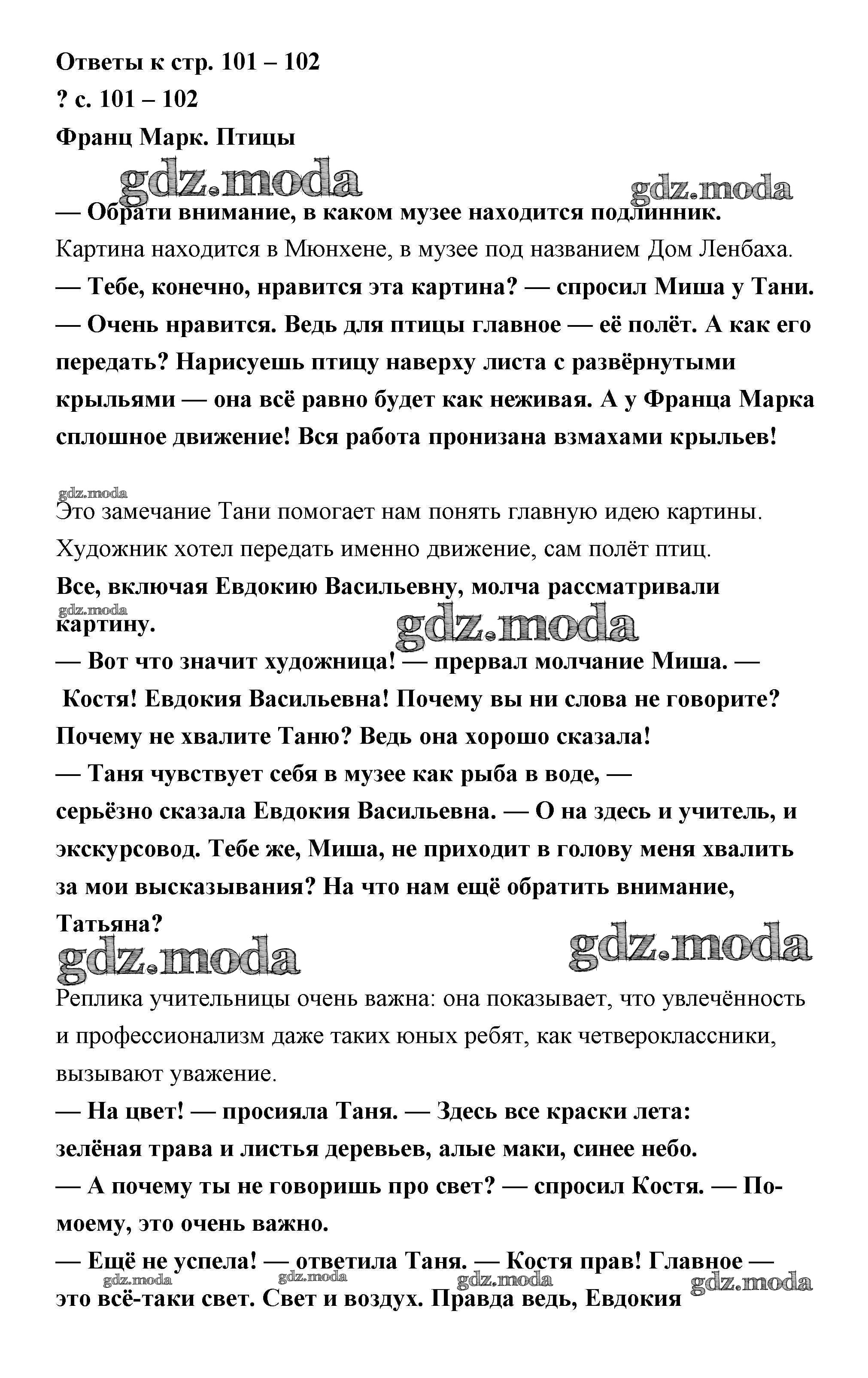 ОТВЕТ на задание № 101 Учебник по Литературе 4 класс Чуракова Перспективная начальная школа