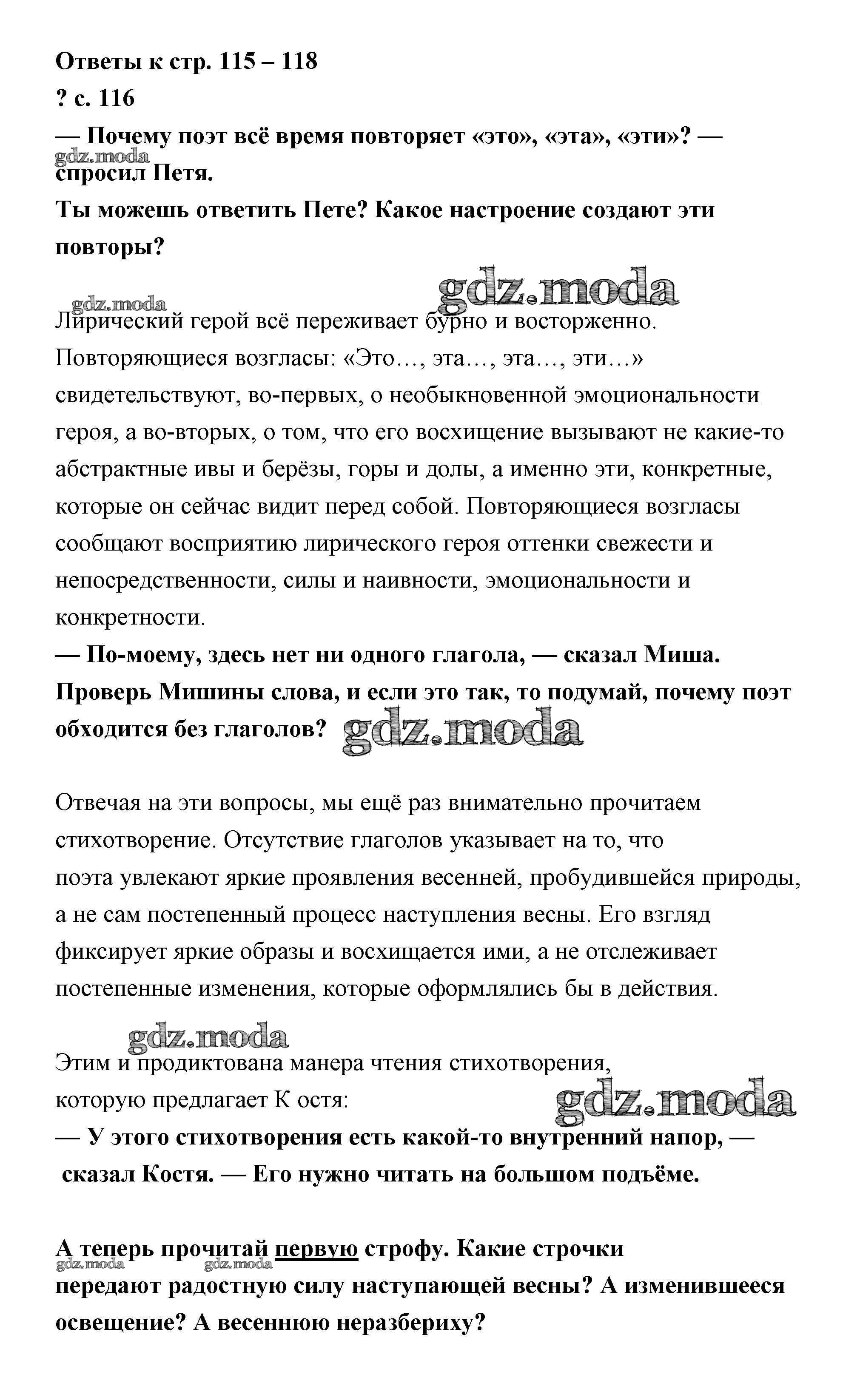 ОТВЕТ на задание № 116 Учебник по Литературе 4 класс Чуракова Перспективная начальная школа