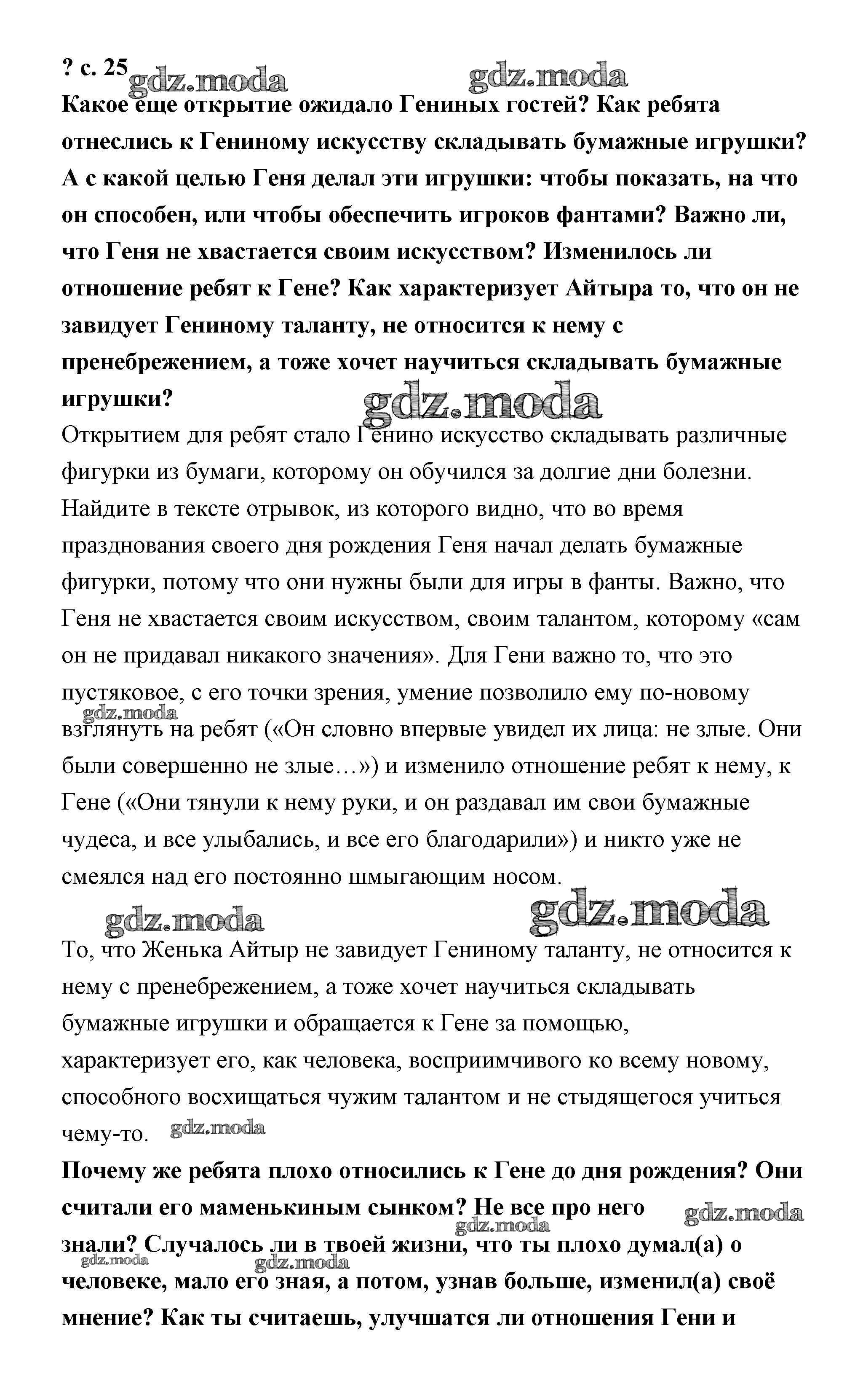 ОТВЕТ на задание № 25 Учебник по Литературе 4 класс Чуракова Перспективная начальная школа