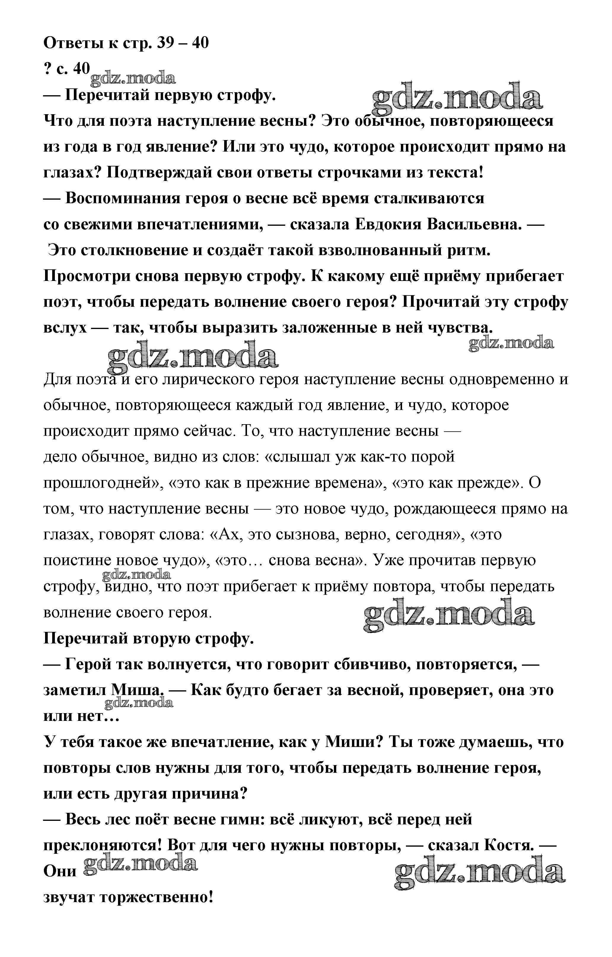 ГДЗ решение к заданию № 40 Литературное чтение 4 класс Чуракова Академкнига 2017 Часть 1, Часть 2 ФГОС бесплатно на гдз.мода!