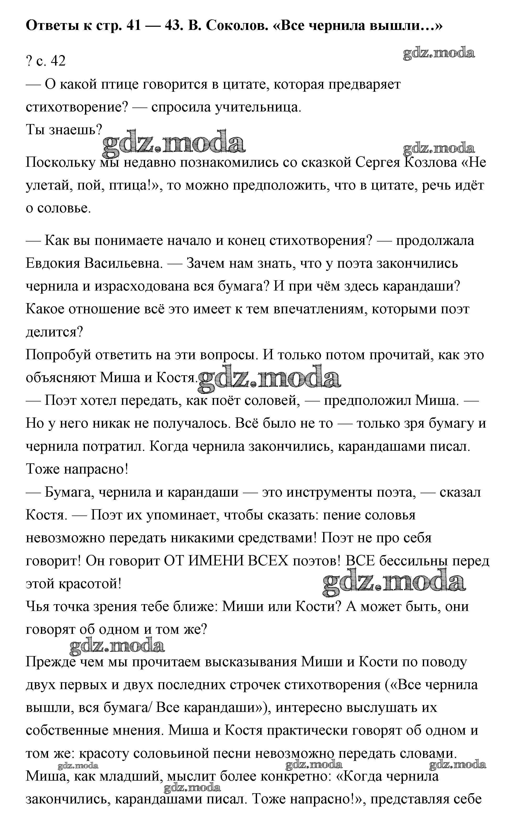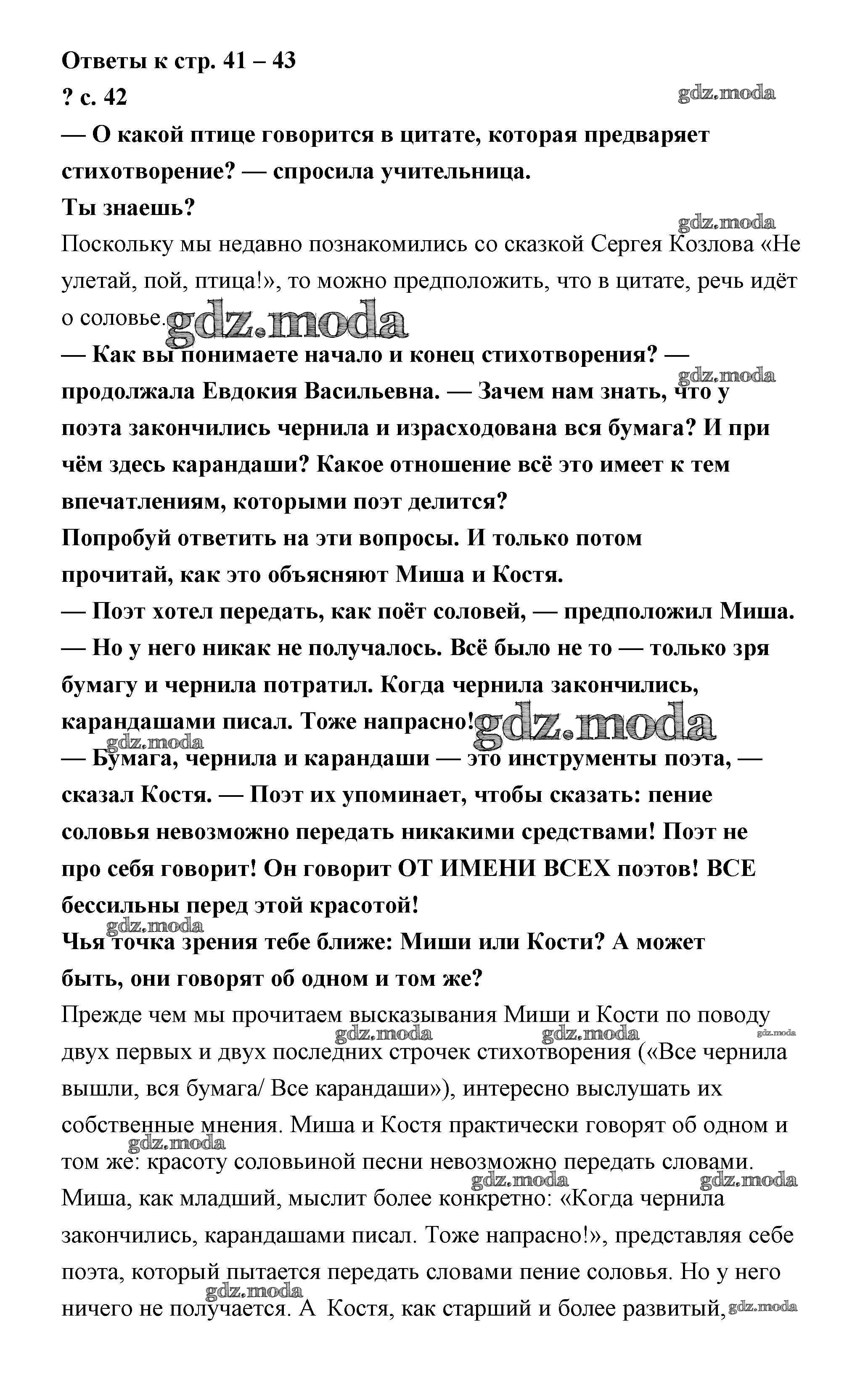 ОТВЕТ на задание № 42 Учебник по Литературе 4 класс Чуракова Перспективная начальная школа