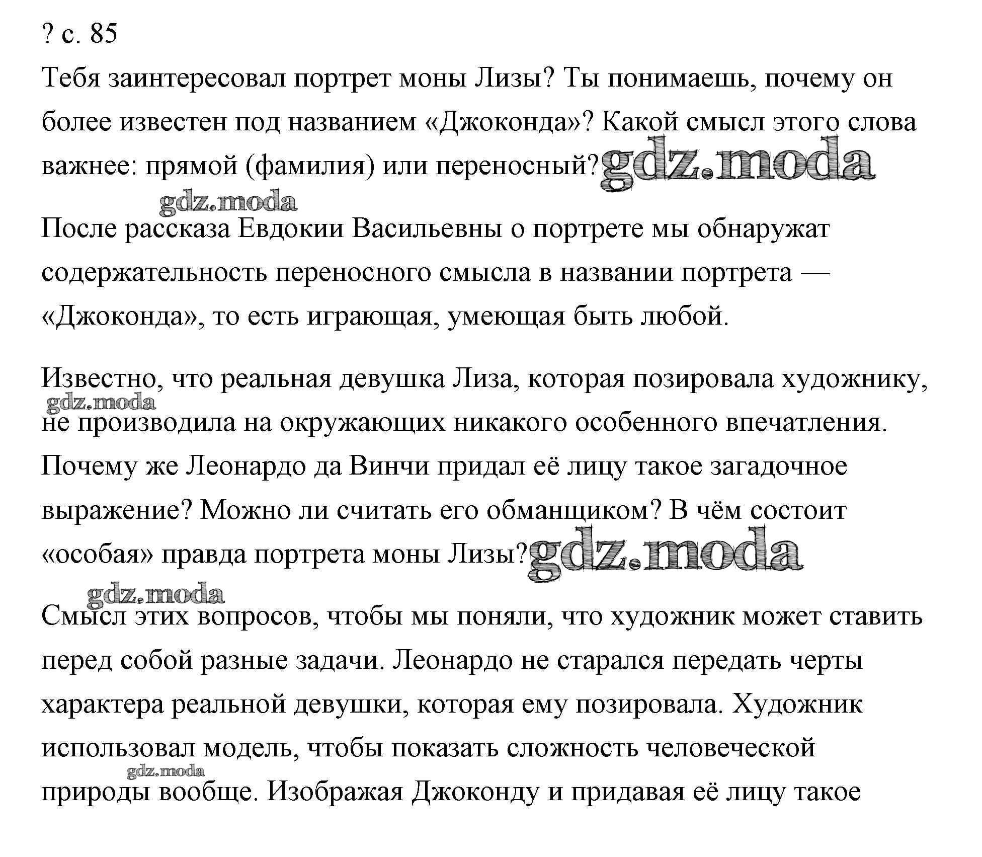 ОТВЕТ на задание № 85 Учебник по Литературе 4 класс Чуракова Перспективная начальная школа