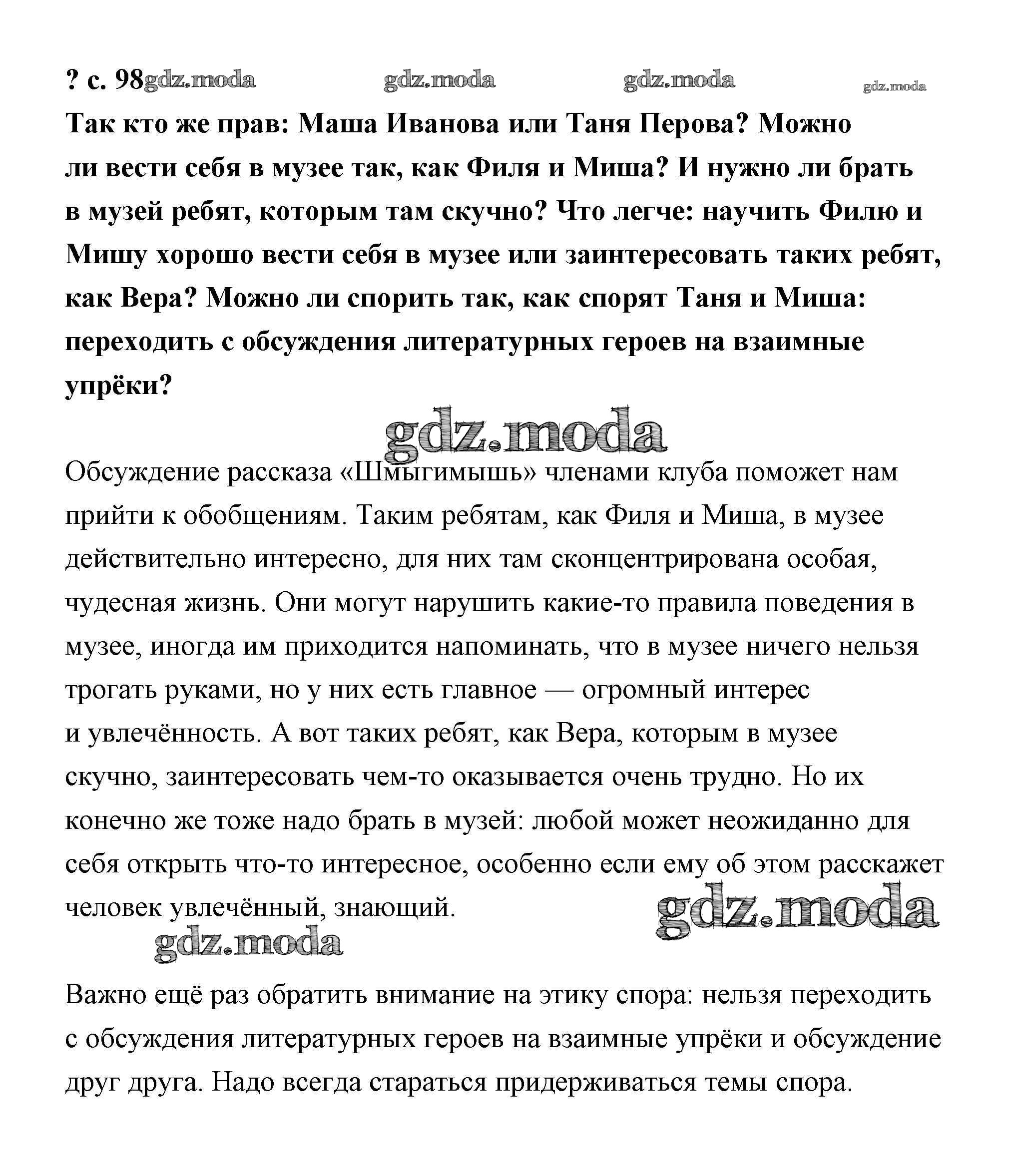 ОТВЕТ на задание № 98 Учебник по Литературе 4 класс Чуракова Перспективная начальная школа