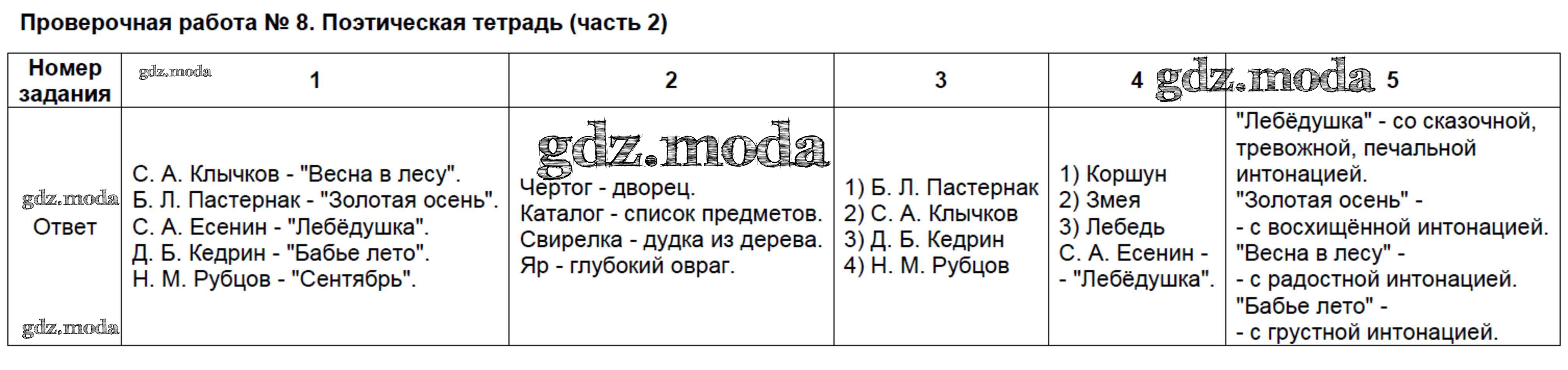 ГДЗ решение к заданию № ПР-8. Поэтическая тетрадь Литературное чтение 4 класс контрольно-измерительные материалы (КИМ) Шубина Г.В. Экзамен 2014 ФГОС бесплатно на гдз.мода!