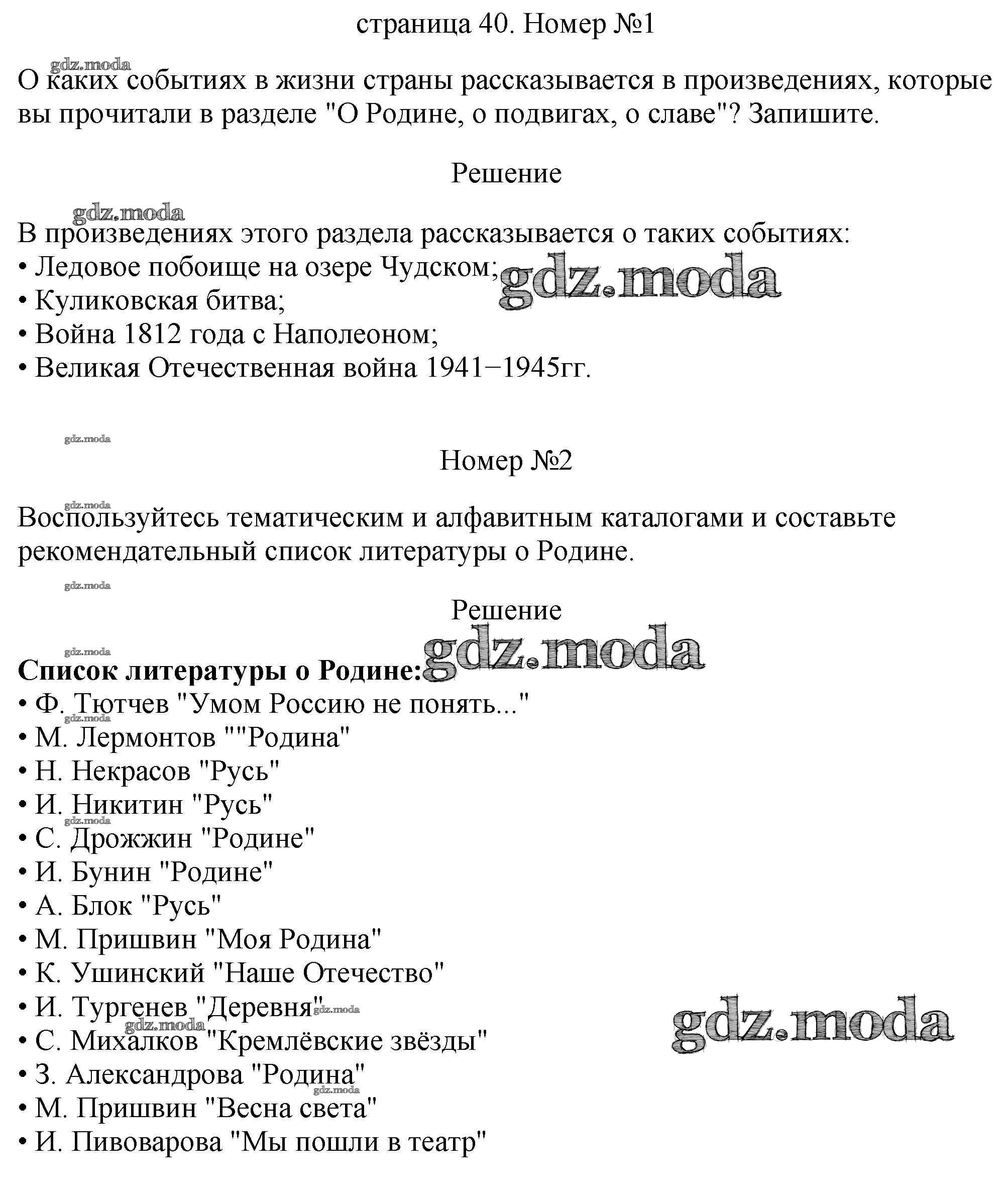 ГДЗ решение к заданию № 40 Литературное чтение 4 класс творческая тетрадь Коти Т.Ю. Просвещение 2020 ФГОС бесплатно на гдз.мода!