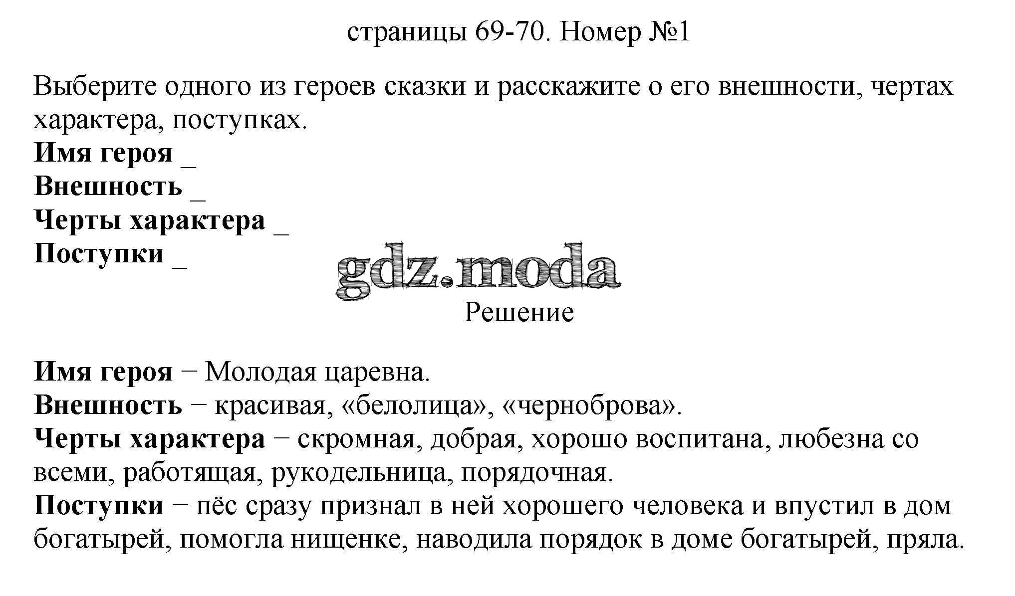 ГДЗ решение к заданию № 69 Литературное чтение 4 класс творческая тетрадь Коти Т.Ю. Просвещение 2020 ФГОС бесплатно на гдз.мода!