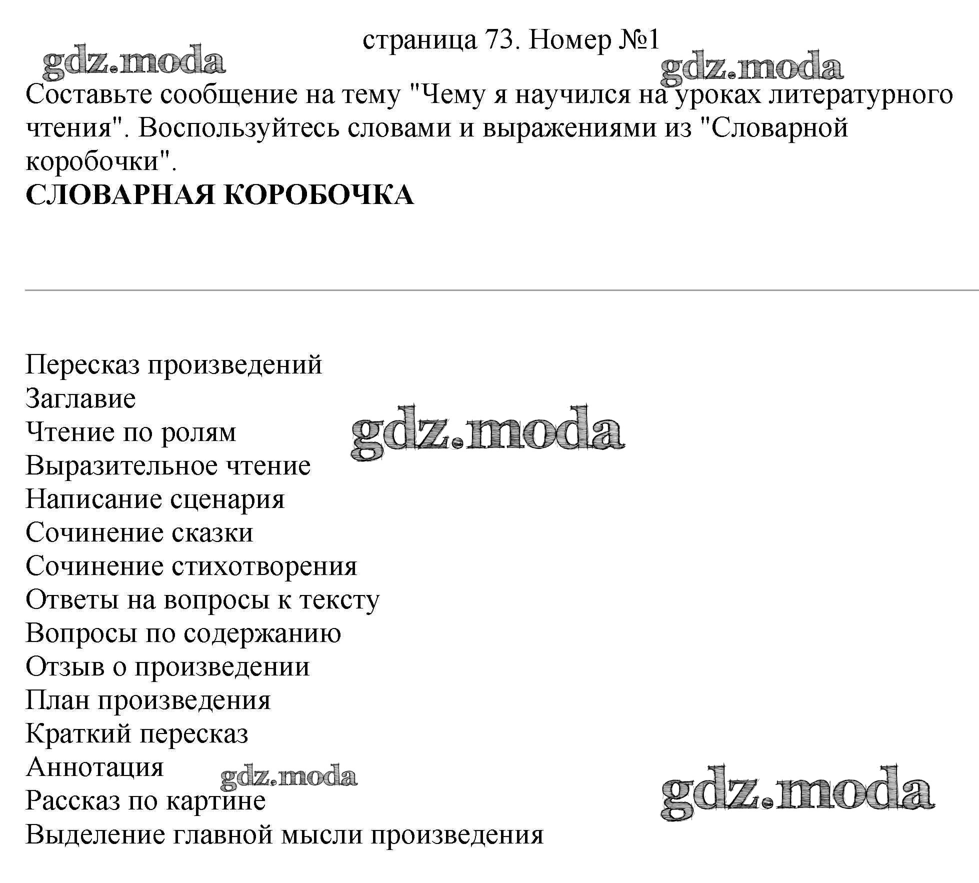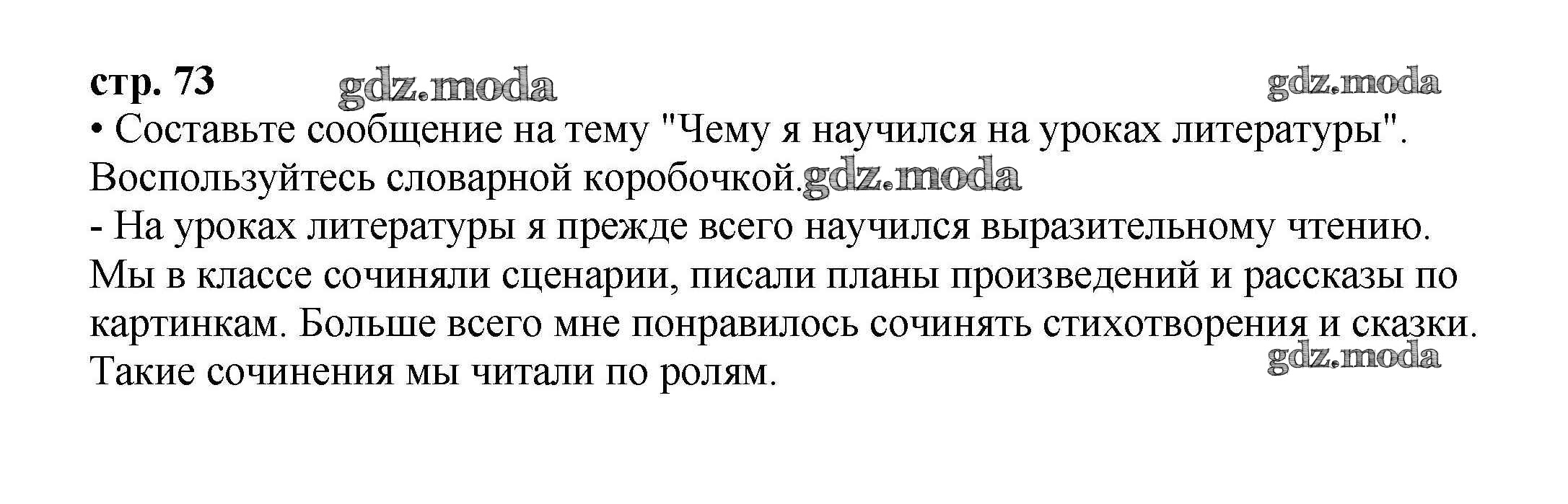 ГДЗ решение к заданию № 73 Литературное чтение 4 класс творческая тетрадь Коти Т.Ю. Просвещение 2020 ФГОС бесплатно на гдз.мода!