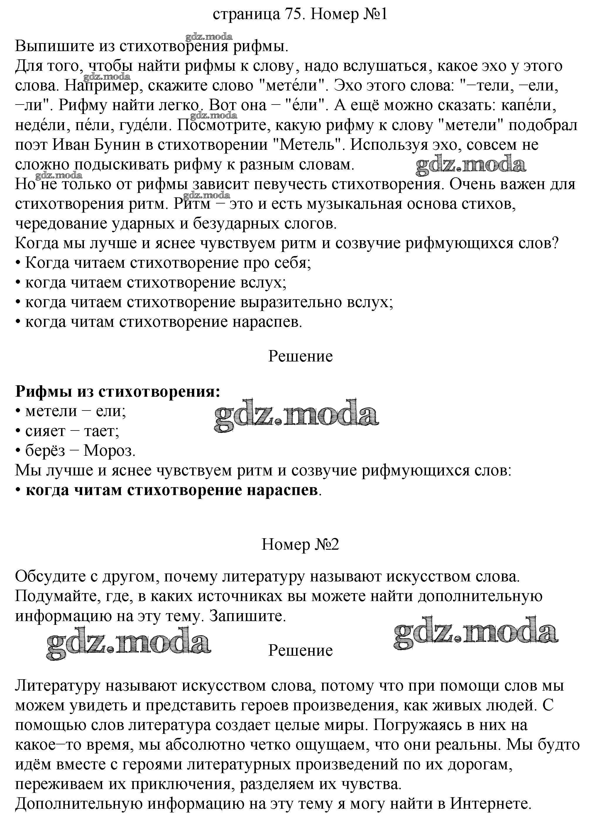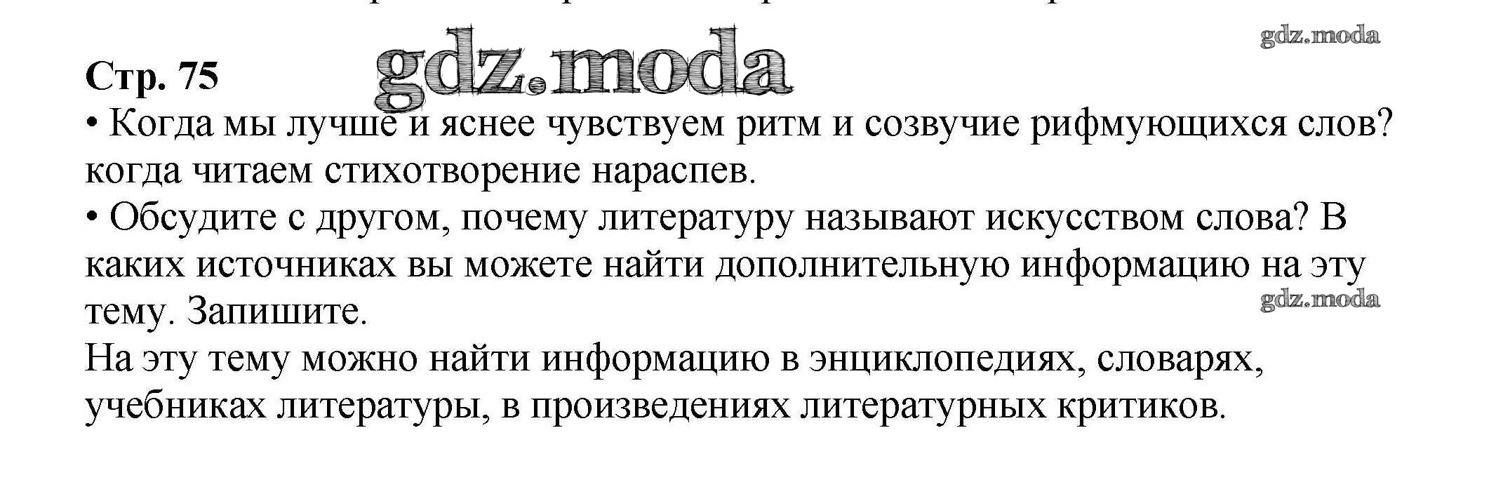 ГДЗ решение к заданию № 75 Литературное чтение 4 класс творческая тетрадь Коти Т.Ю. Просвещение 2020 ФГОС бесплатно на гдз.мода!