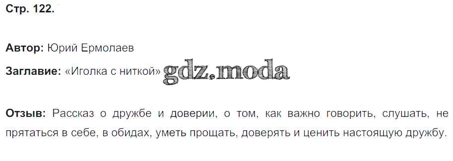 ГДЗ решение к заданию № 122 Литературное чтение 4 класс рабочая тетрадь Кубасова О.В. Ассоциация 21 век 2019 Часть 1, Часть 2 ФГОС бесплатно на гдз.мода!
