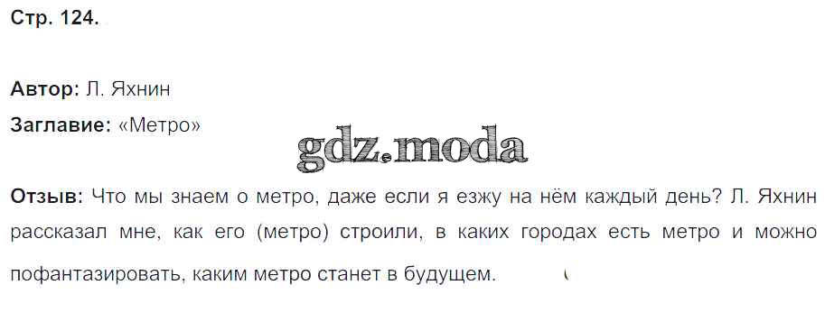 ГДЗ решение к заданию № 124 Литературное чтение 4 класс рабочая тетрадь Кубасова О.В. Ассоциация 21 век 2019 Часть 1, Часть 2 ФГОС бесплатно на гдз.мода!