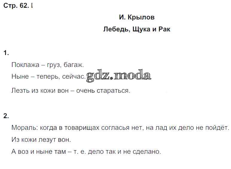 ГДЗ решение к заданию № 62 Литературное чтение 4 класс рабочая тетрадь Кубасова О.В. Ассоциация 21 век 2019 Часть 1, Часть 2 ФГОС бесплатно на гдз.мода!