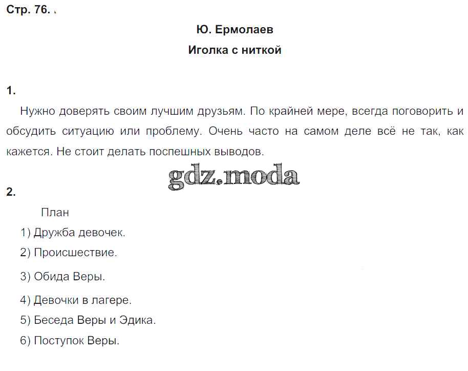 ГДЗ решение к заданию № 76 Литературное чтение 4 класс рабочая тетрадь Кубасова О.В. Ассоциация 21 век 2019 Часть 1, Часть 2 ФГОС бесплатно на гдз.мода!