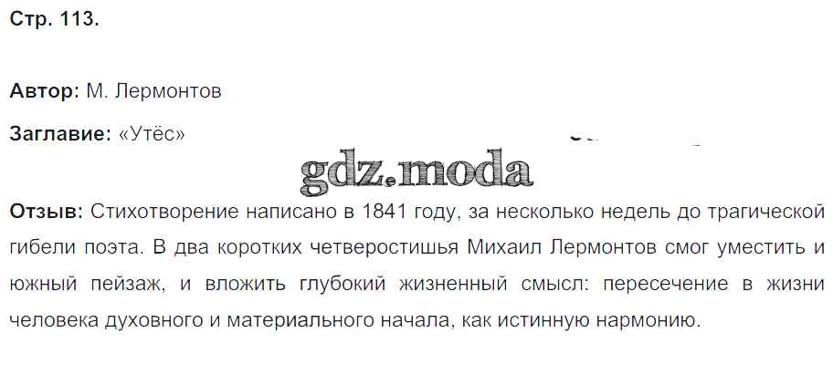 ГДЗ решение к заданию № 113 Литературное чтение 4 класс рабочая тетрадь Кубасова О.В. Ассоциация 21 век 2019 Часть 1, Часть 2 ФГОС бесплатно на гдз.мода!