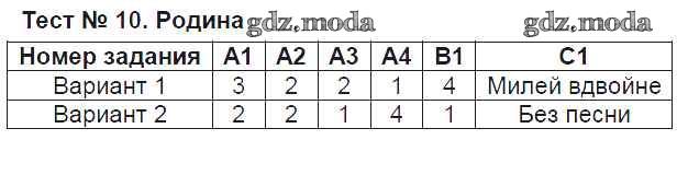 ГДЗ решение к заданию № Тест №10. Родина Литературное чтение 4 класс контрольно-измерительные материалы (КИМ) Кутявина С.В. ВАКО 2017 ФГОС бесплатно на гдз.мода!