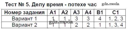 ГДЗ решение к заданию № Тест №5. Делу время - потехе час Литературное чтение 4 класс контрольно-измерительные материалы (КИМ) Кутявина С.В. ВАКО 2017 ФГОС бесплатно на гдз.мода!