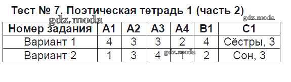 тест №7. Поэтическая тетрадь 1 (часть 2)