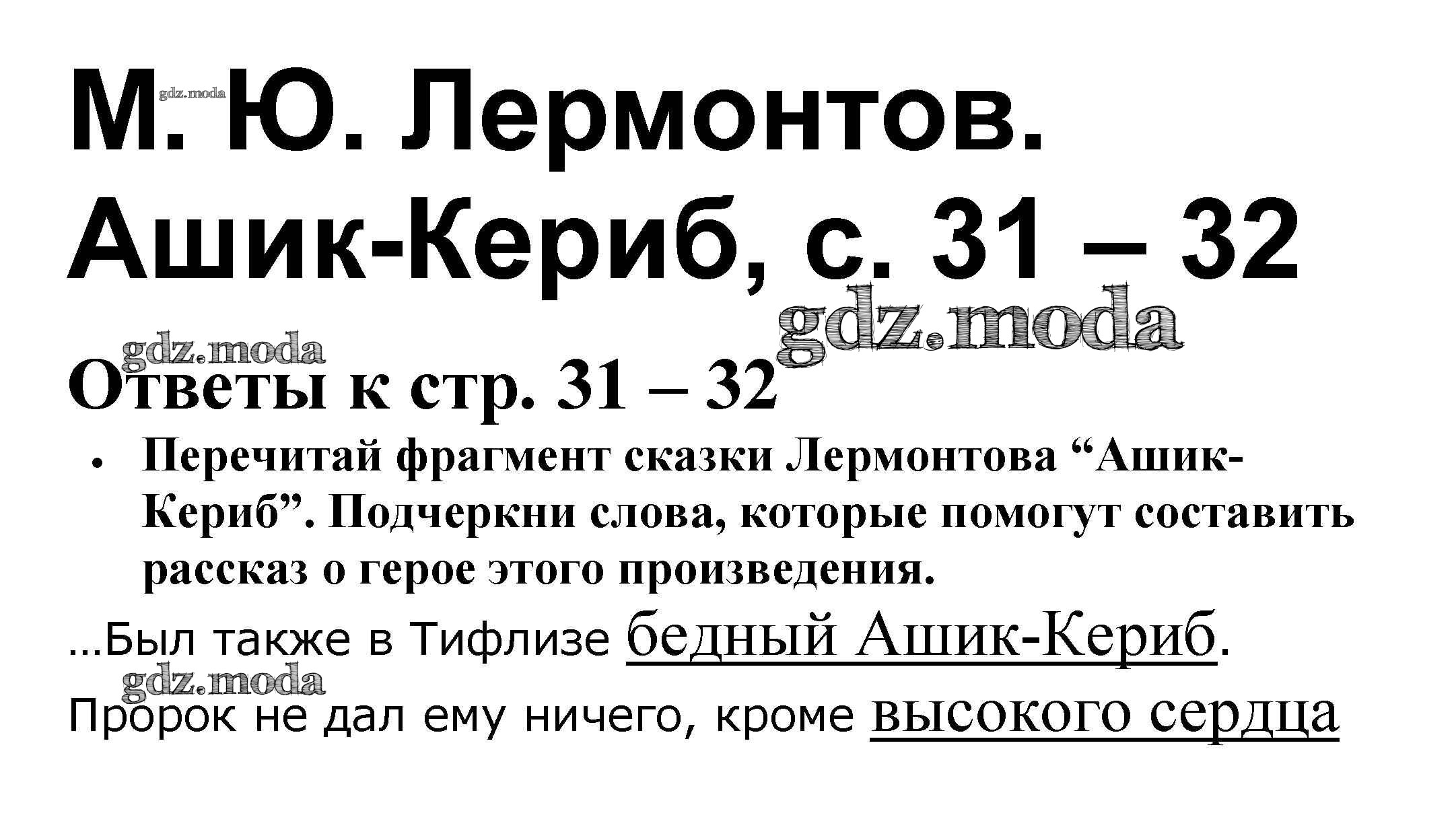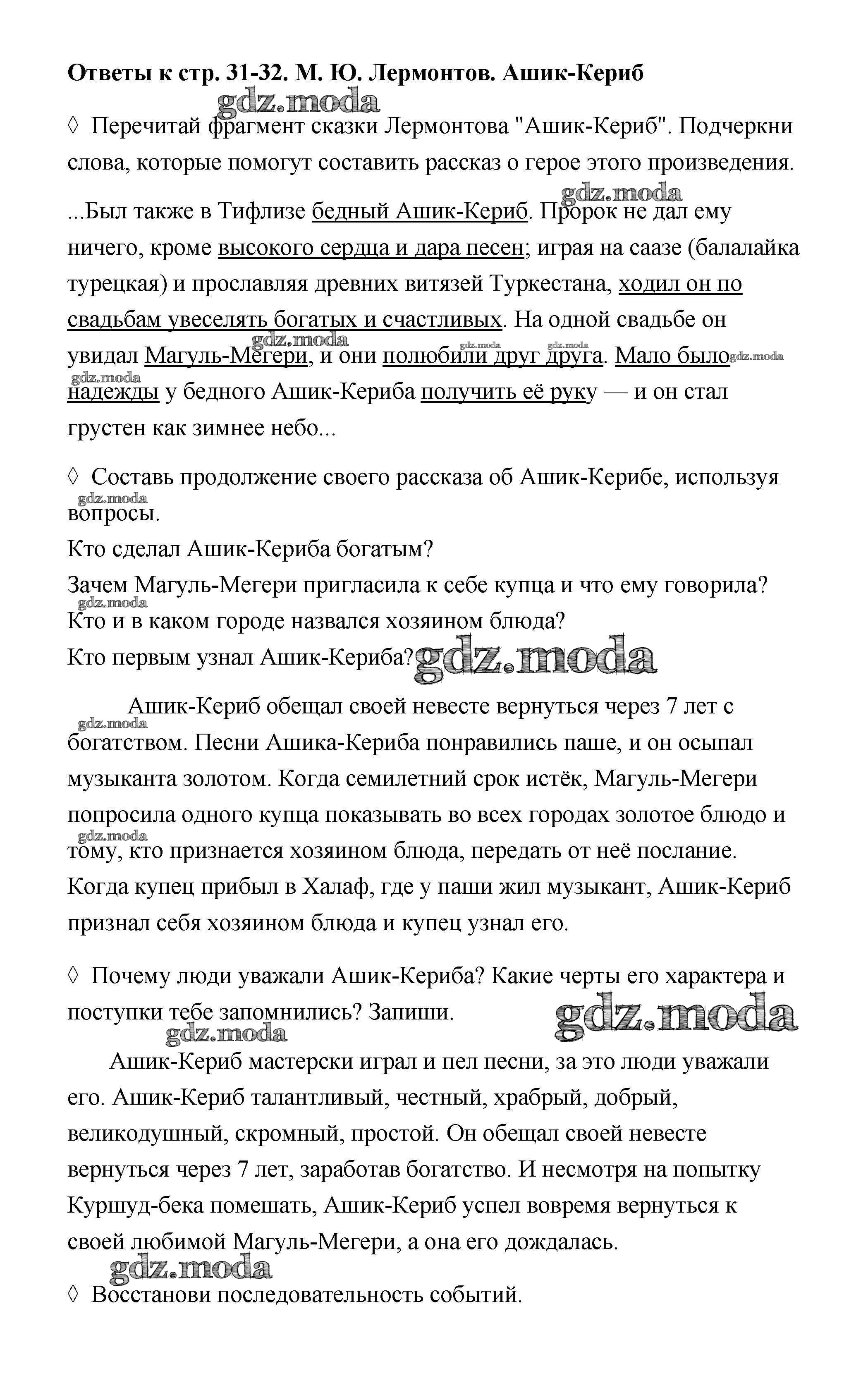 ГДЗ решение к заданию № 31-32 Литературное чтение 4 класс рабочая тетрадь Бойкина М.В. Просвещение 2016 ФГОС бесплатно на гдз.мода!