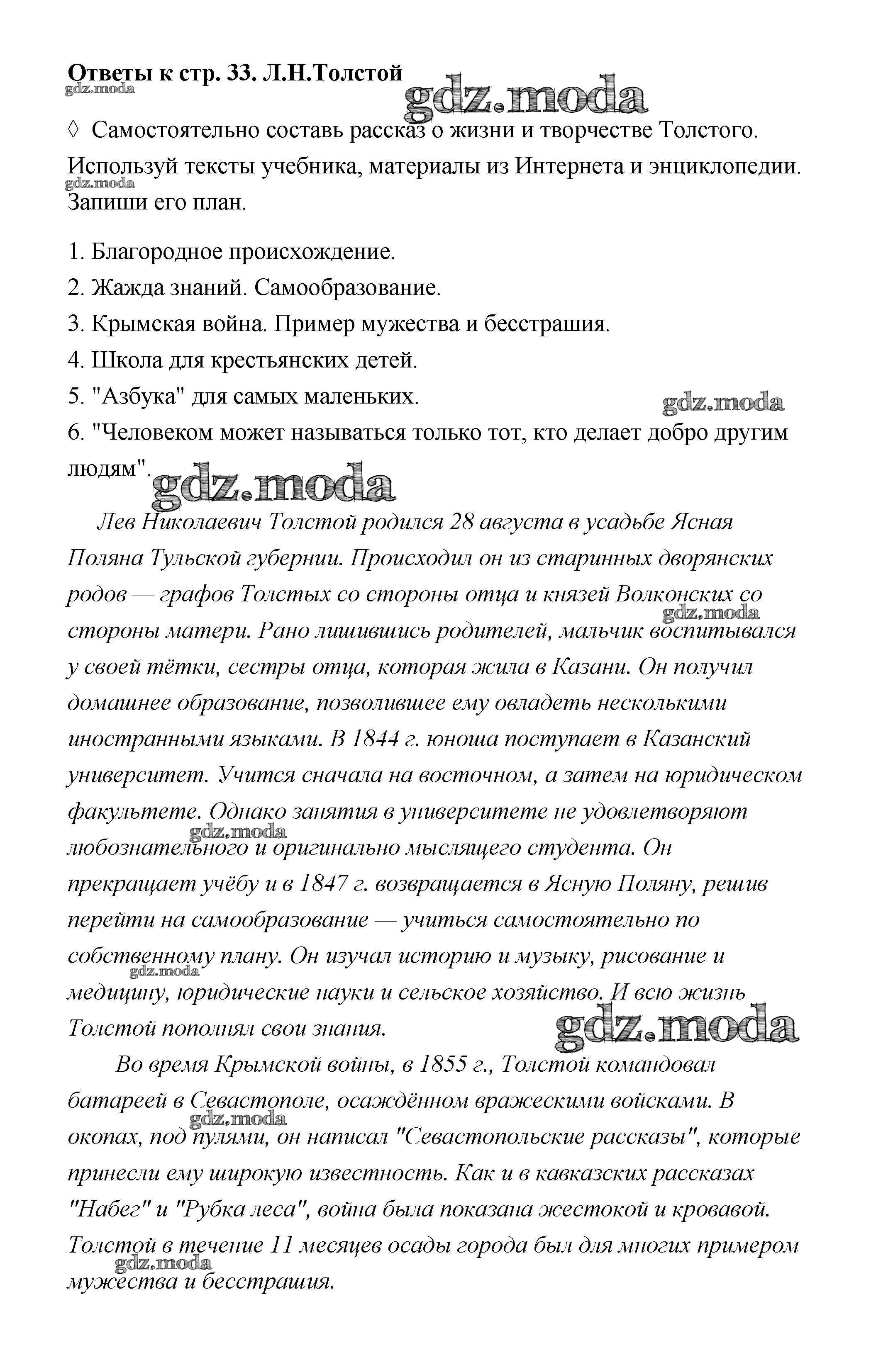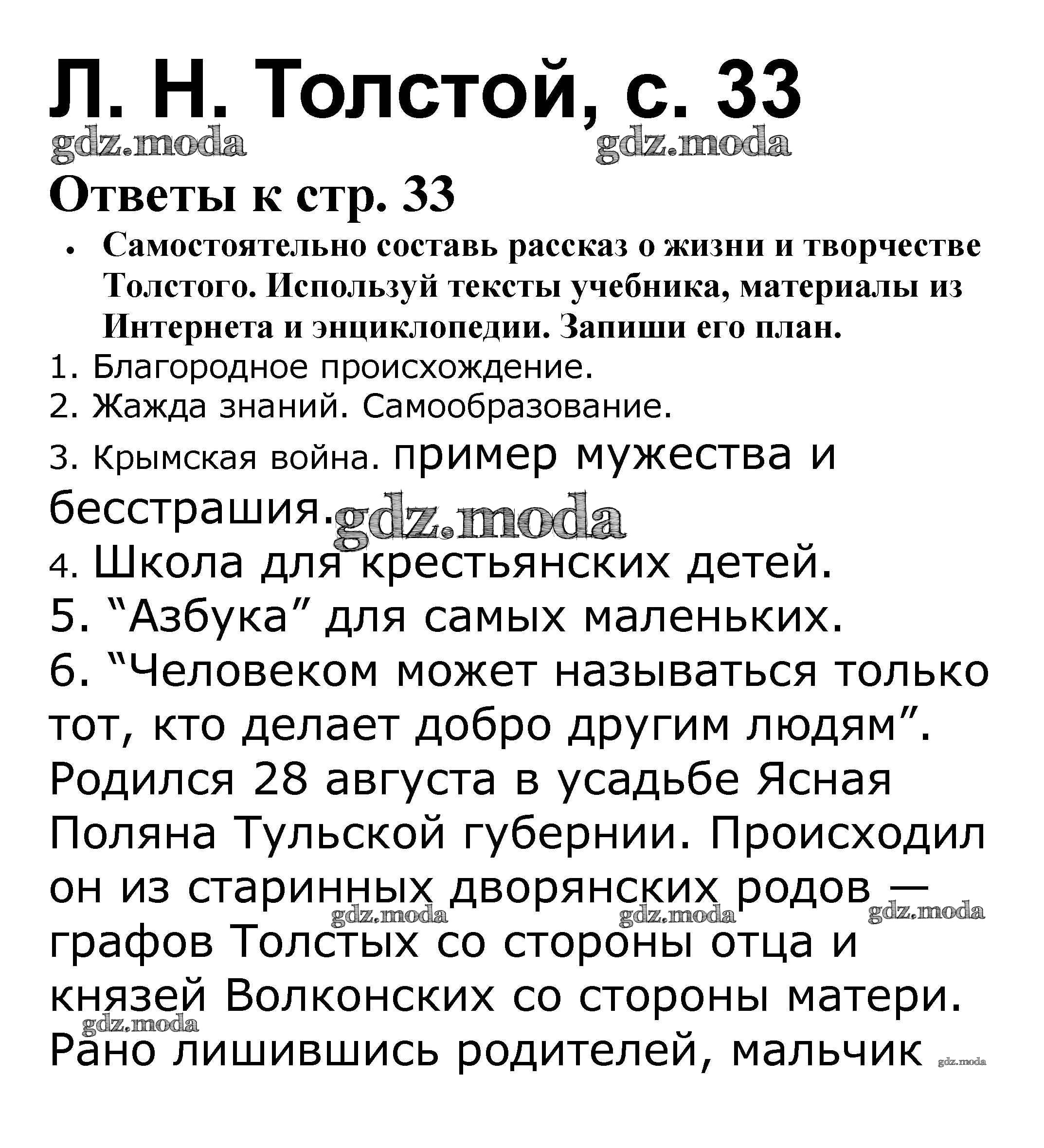 ГДЗ решение к заданию № 33 Литературное чтение 4 класс рабочая тетрадь Бойкина М.В. Просвещение 2016 ФГОС бесплатно на гдз.мода!