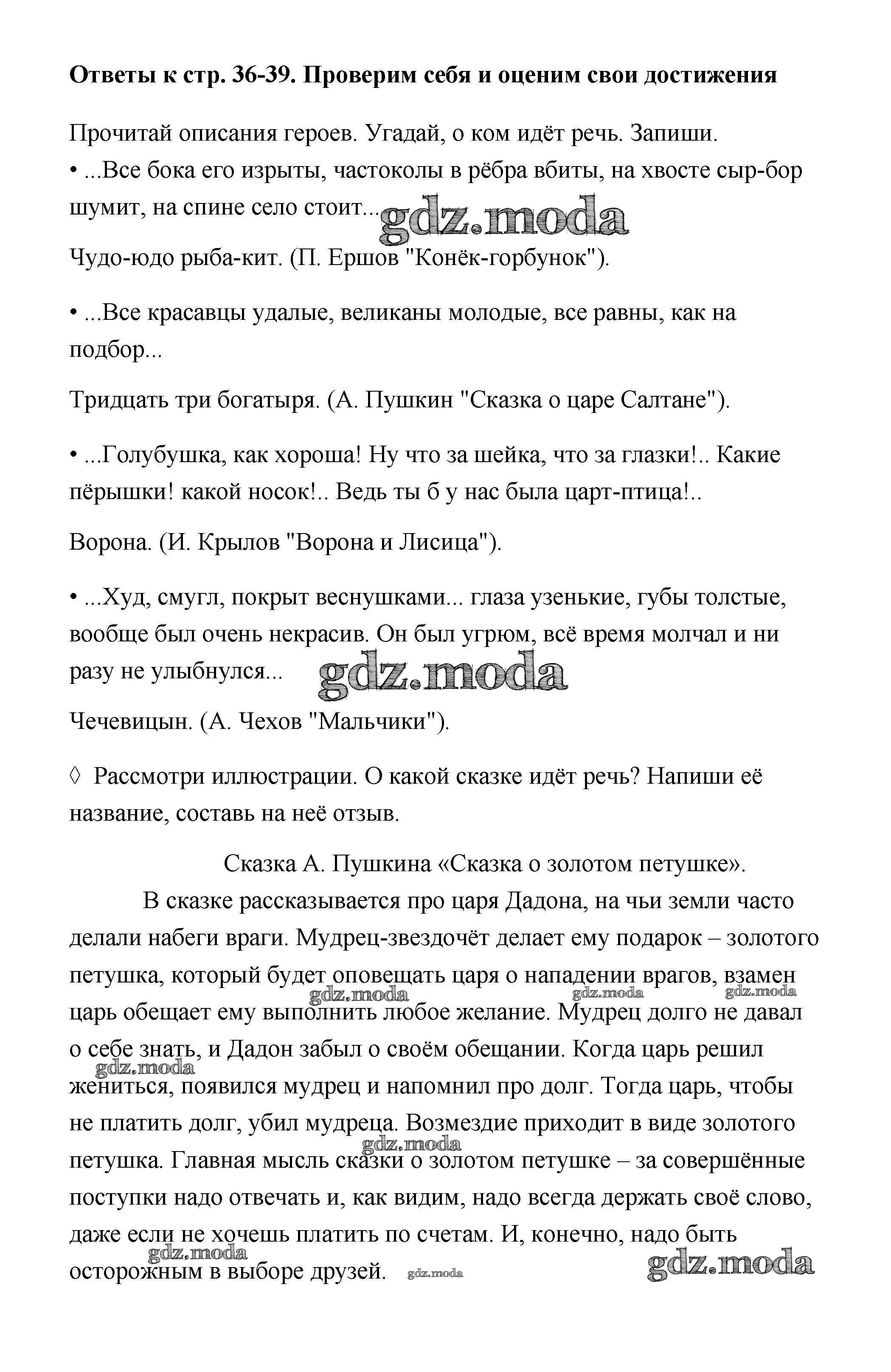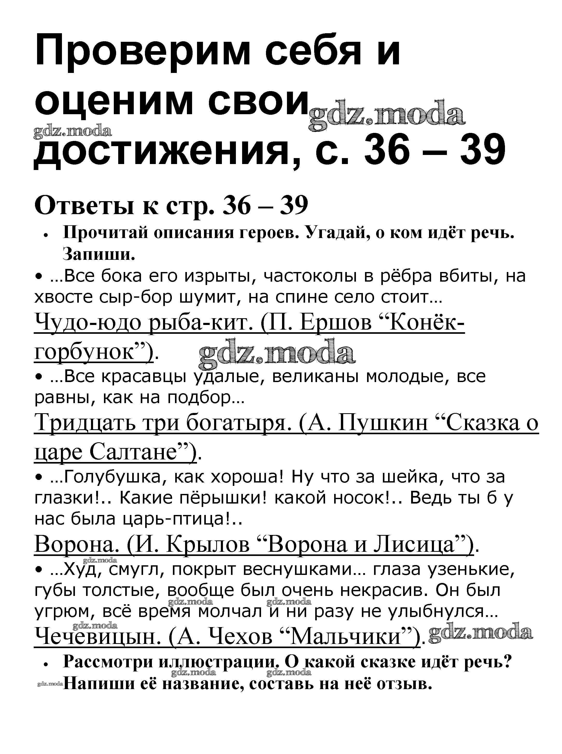 ГДЗ решение к заданию № 36-39 Литературное чтение 4 класс рабочая тетрадь Бойкина М.В. Просвещение 2016 ФГОС бесплатно на гдз.мода!