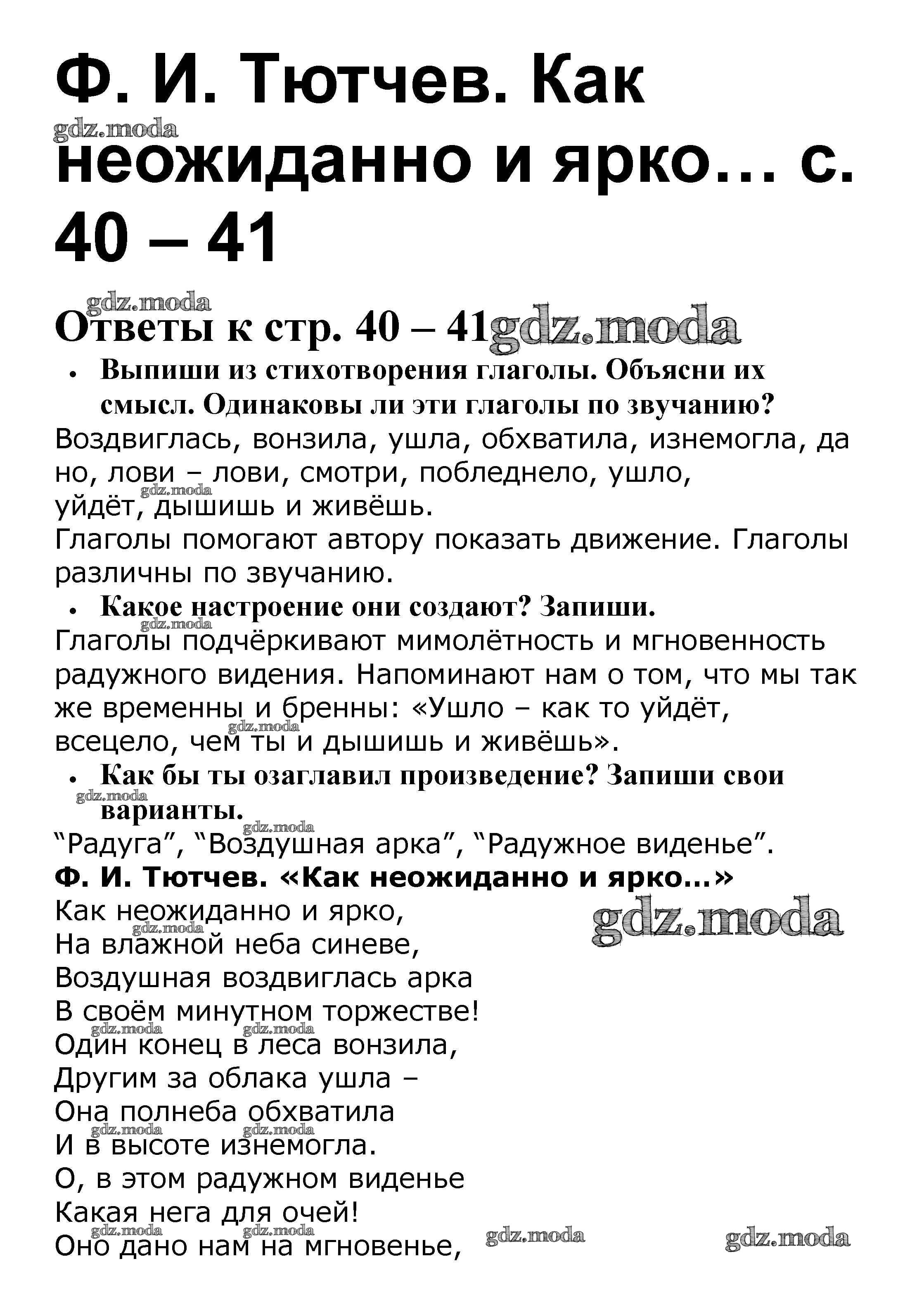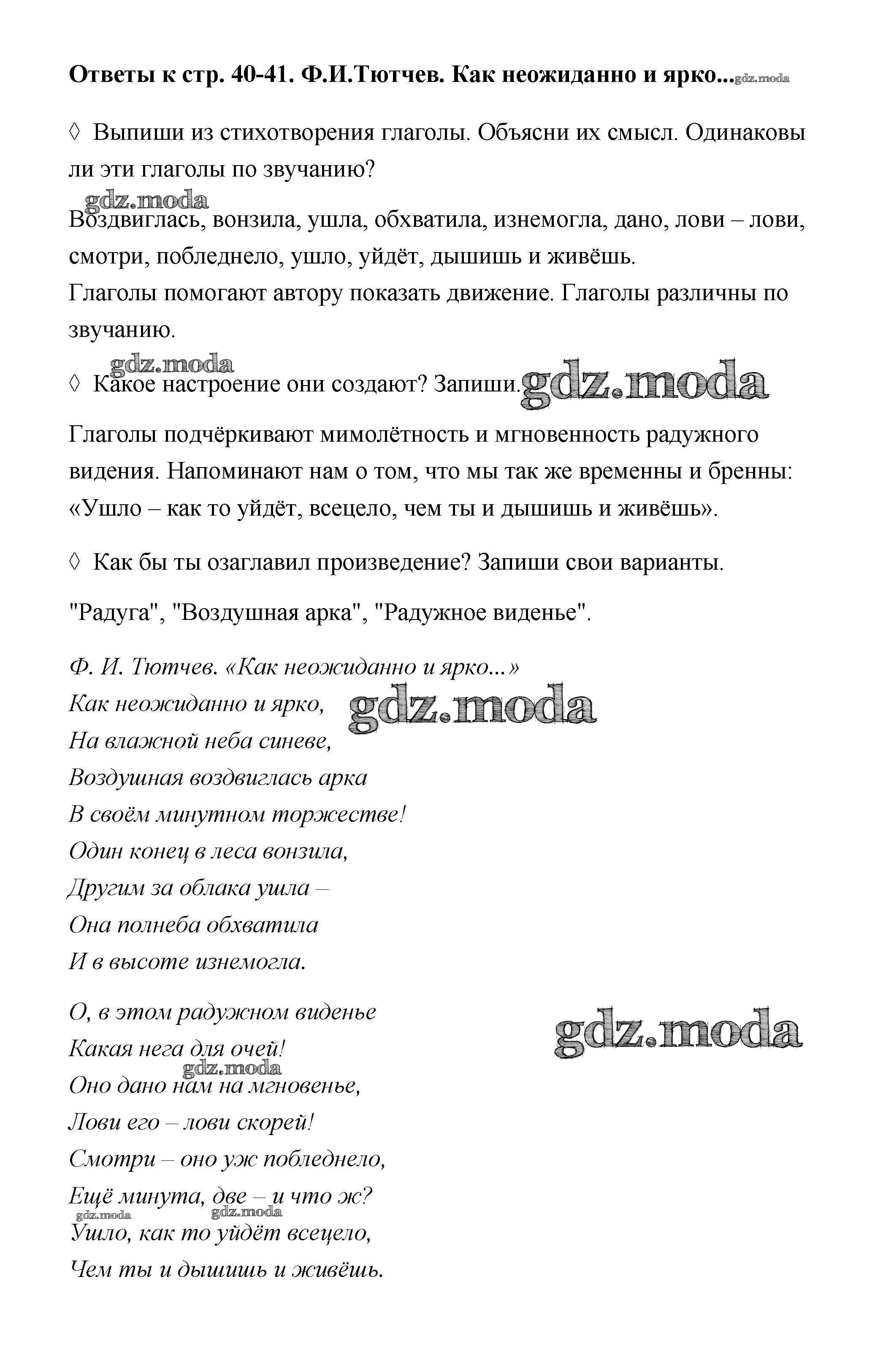ГДЗ решение к заданию № 40-41 Литературное чтение 4 класс рабочая тетрадь Бойкина М.В. Просвещение 2016 ФГОС бесплатно на гдз.мода!