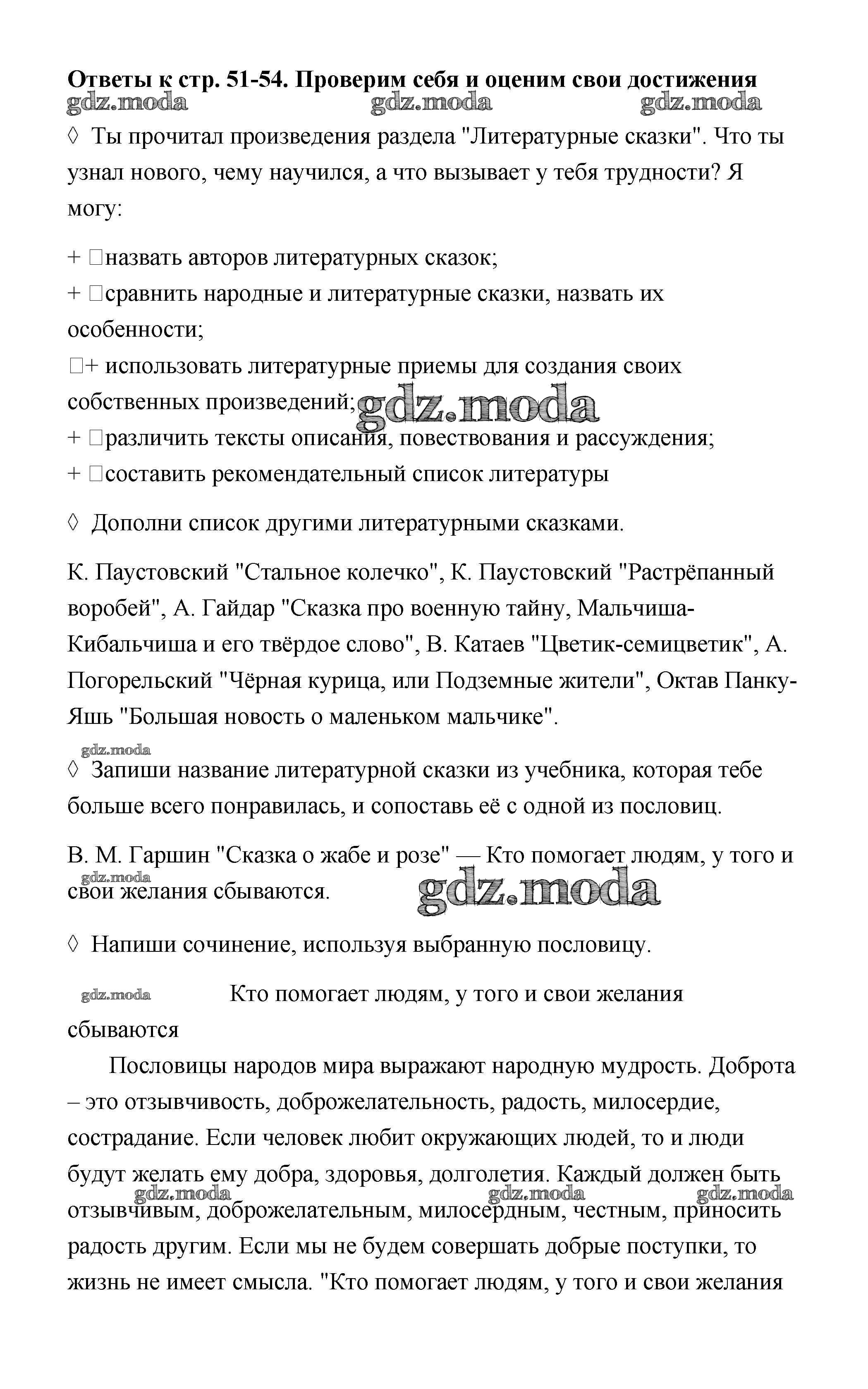 ГДЗ решение к заданию № 51-54 Литературное чтение 4 класс рабочая тетрадь Бойкина М.В. Просвещение 2016 ФГОС бесплатно на гдз.мода!