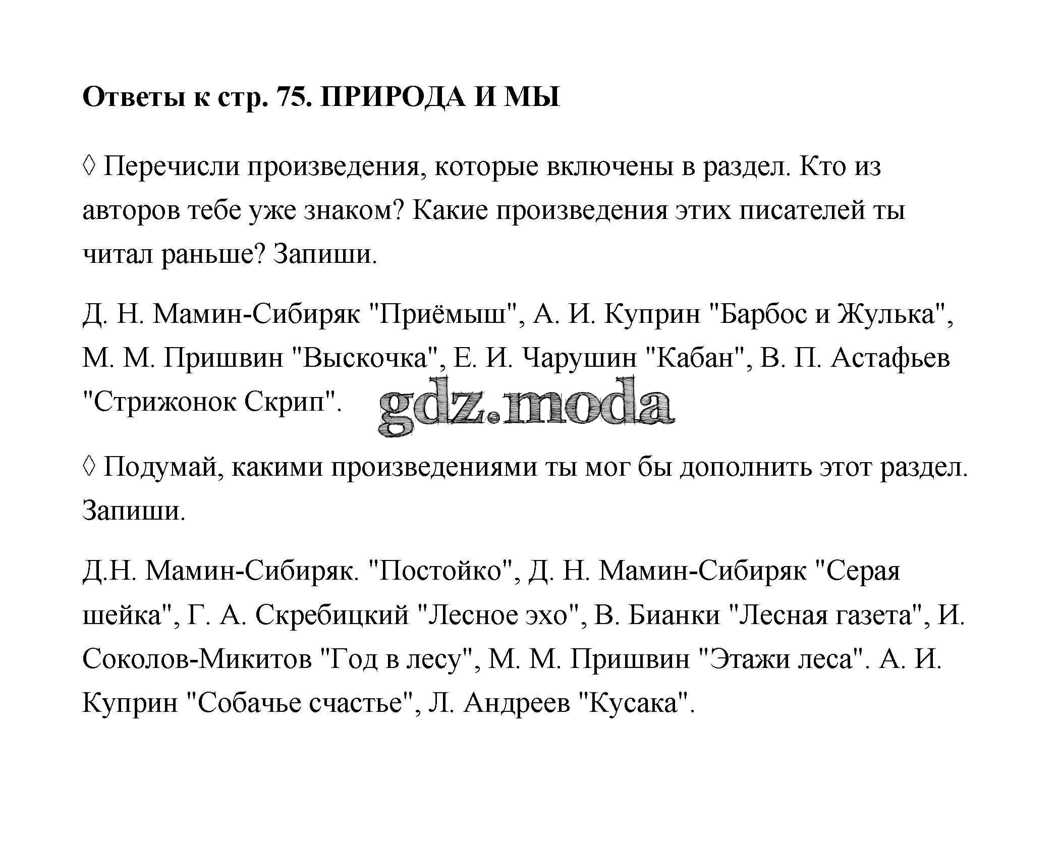 ГДЗ решение к заданию № 75 Литературное чтение 4 класс рабочая тетрадь Бойкина М.В. Просвещение 2016 ФГОС бесплатно на гдз.мода!